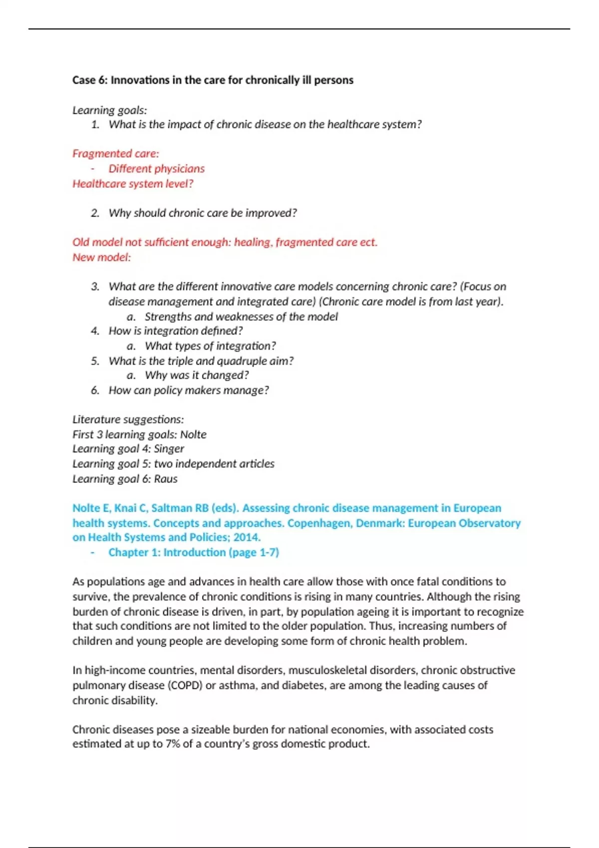 disease management and integrated care) (Chronic care model is from last year).