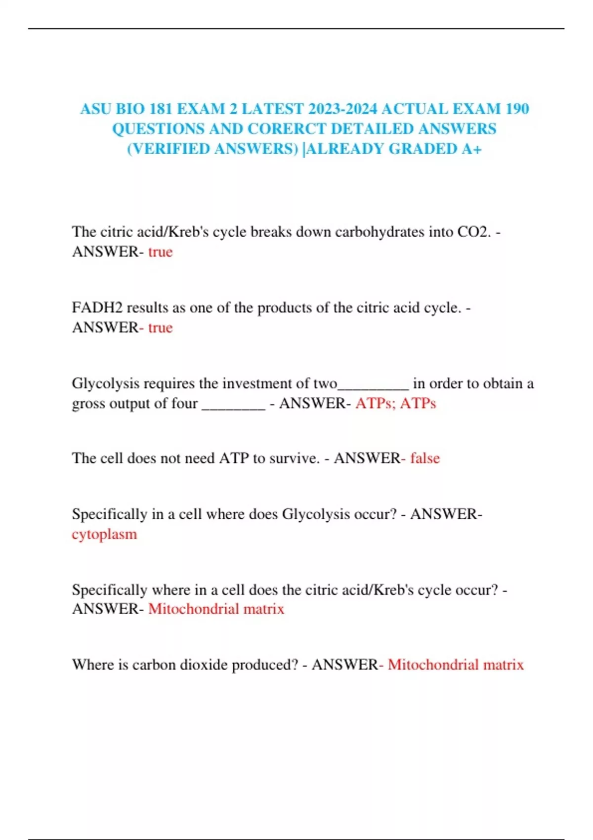 ASU BIO 181 EXAM 2 LATEST ACTUAL EXAM 190 QUESTIONS AND CORERCT DETAILED ANSWERS (VERIFIED ANSWERS) |ALREADY GRADED A+
