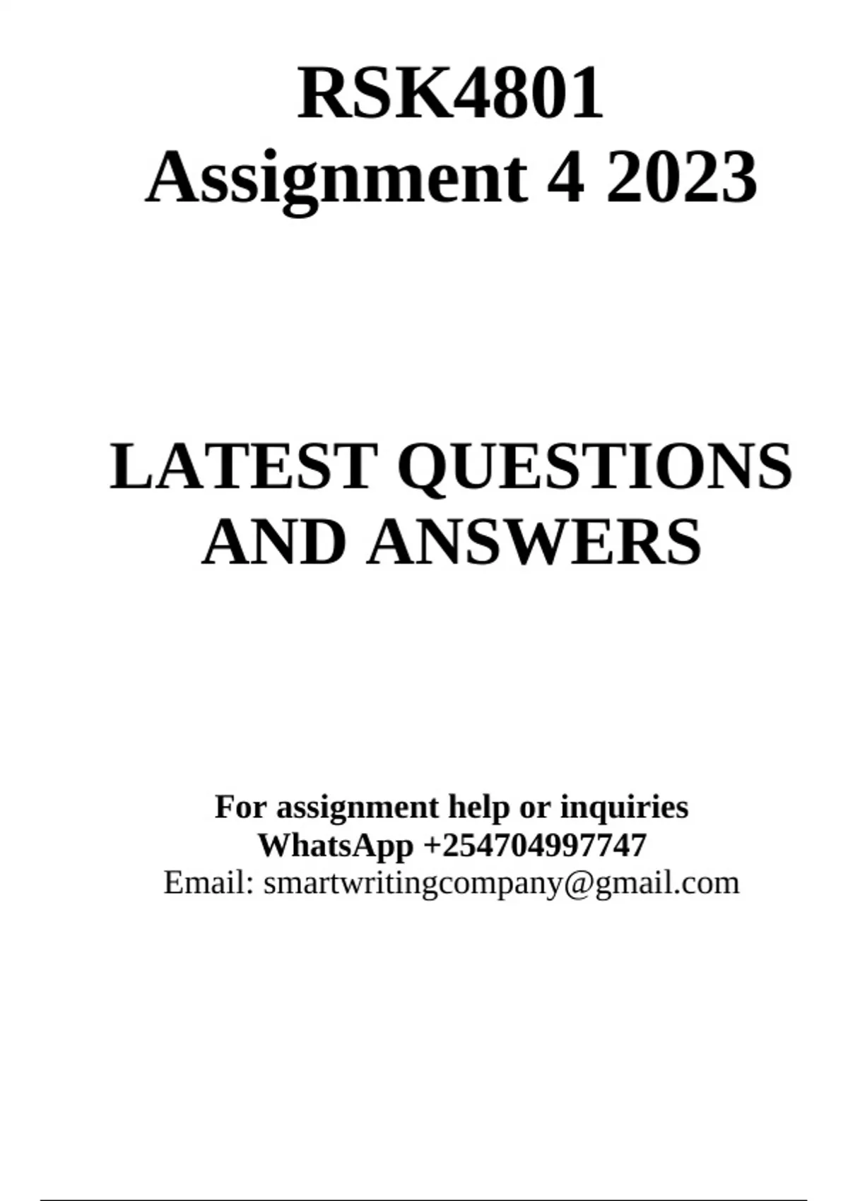 RSK4801 ASSIGNMENT 04 FOR 2023