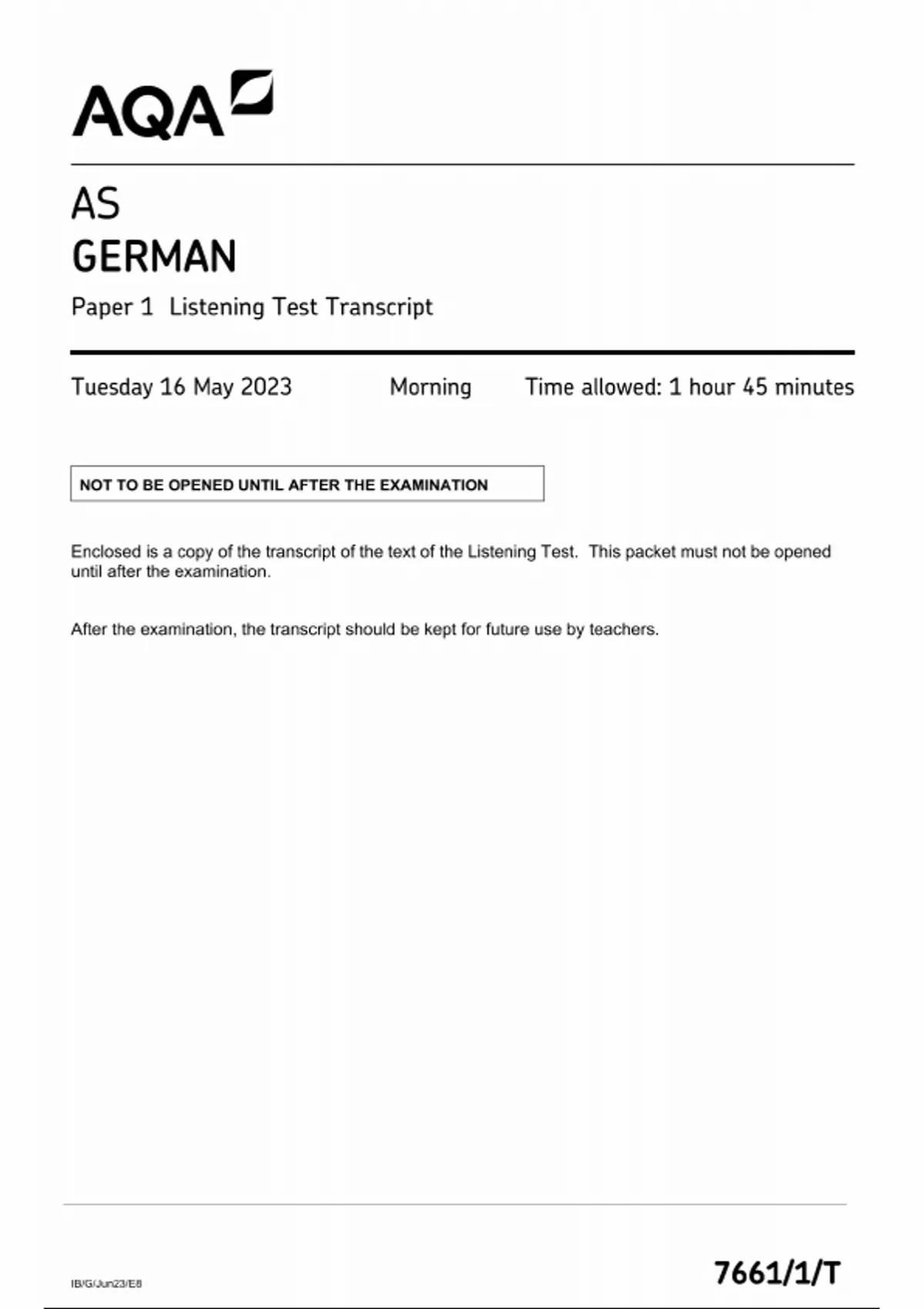 AQA AS GERMAN PAPER 1 MAY 2023 QUESTION PAPER (7661/1/T: Listening Test Transcript)