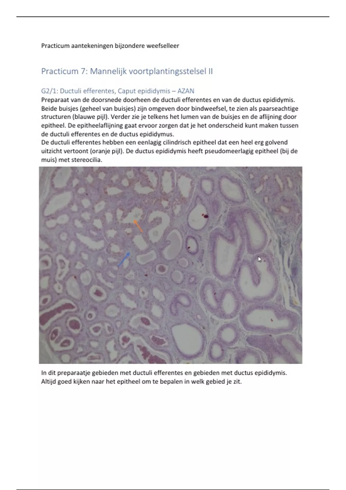Bijzondere weefselleer practicum 7, filmpjes uitgeschreven met aanduidingen