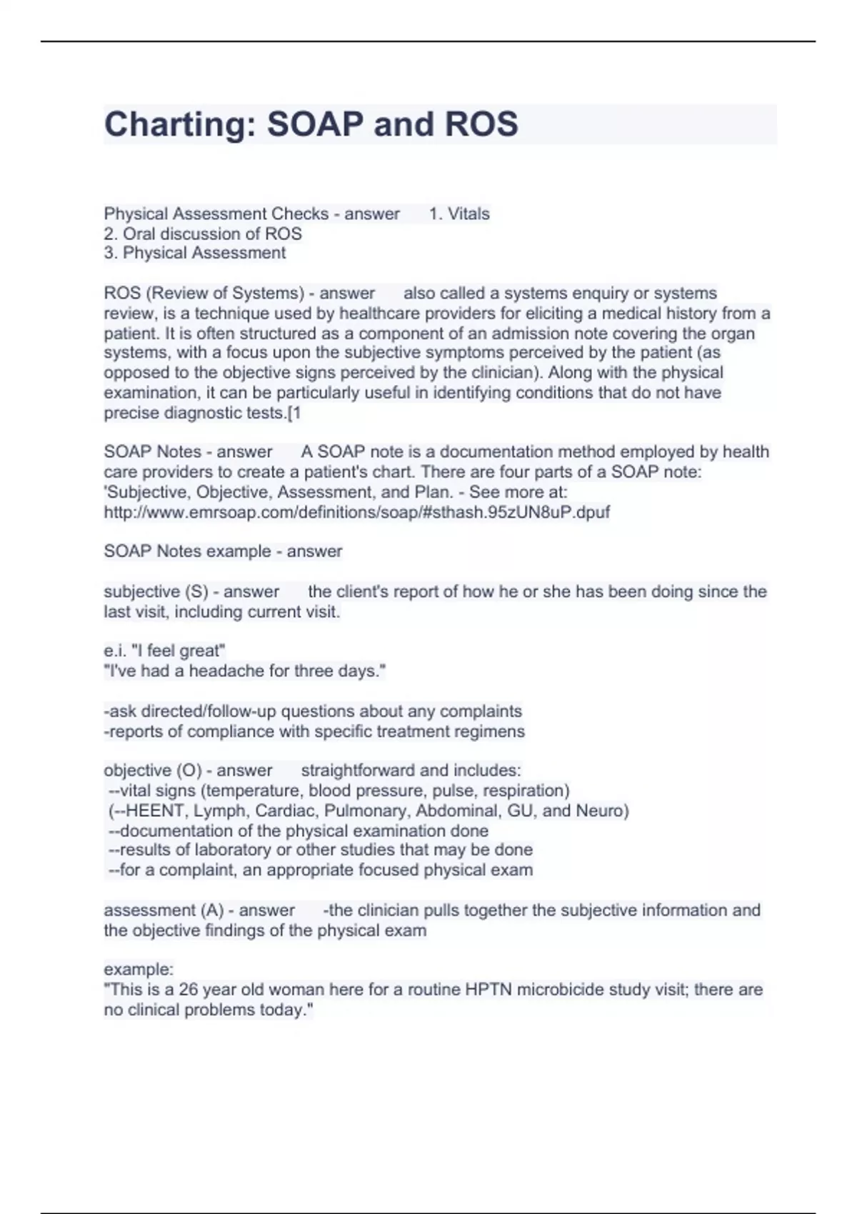 Exam of 2 pages for the course SOAP at SOAP (Charting)