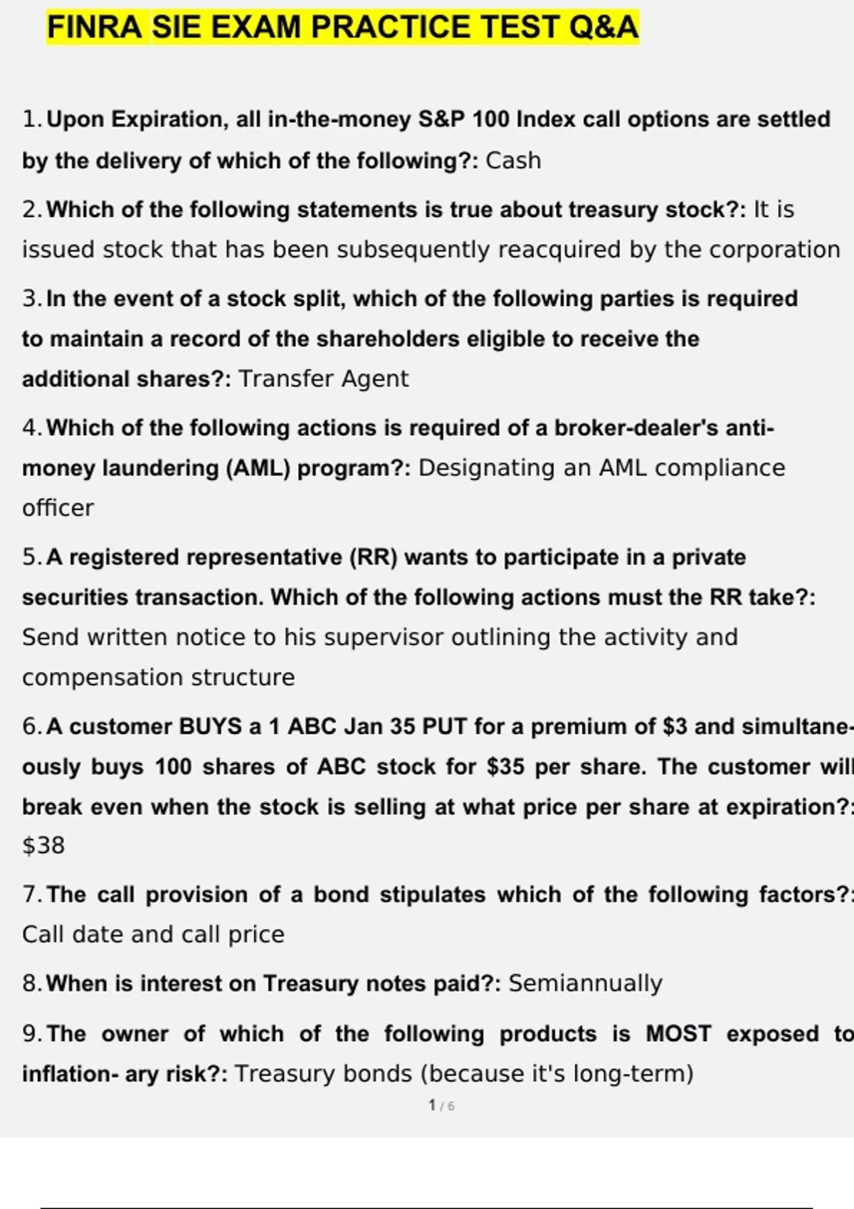 FINRA SIE EXAM (PACKAGE) 100% CORRECT STUDY QUESTIONS AND ANSWERS GRADED A+