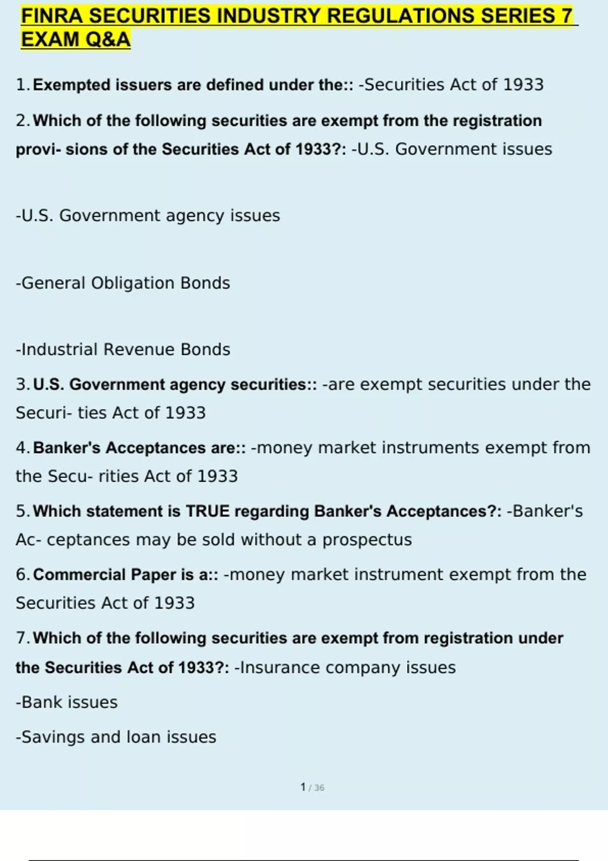 FINRA SECURITIES INDUSTRY REGULATIONS SERIES 7 EXAM 2023/2024 QUESTIONS AND ANSWERS GRADED A+