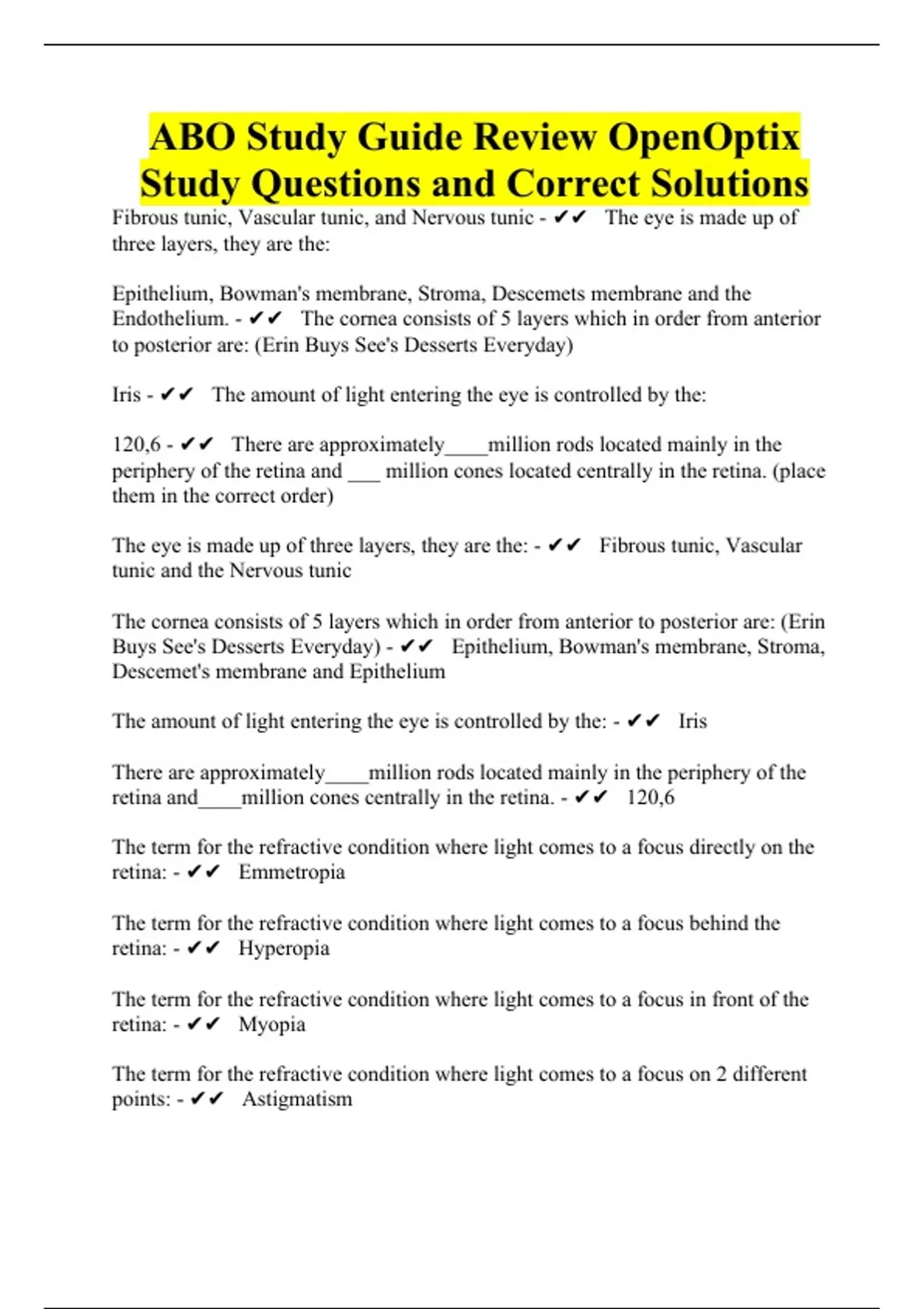 ABO Study Guide Review OpenOptix Study Questions and Correct Solutions