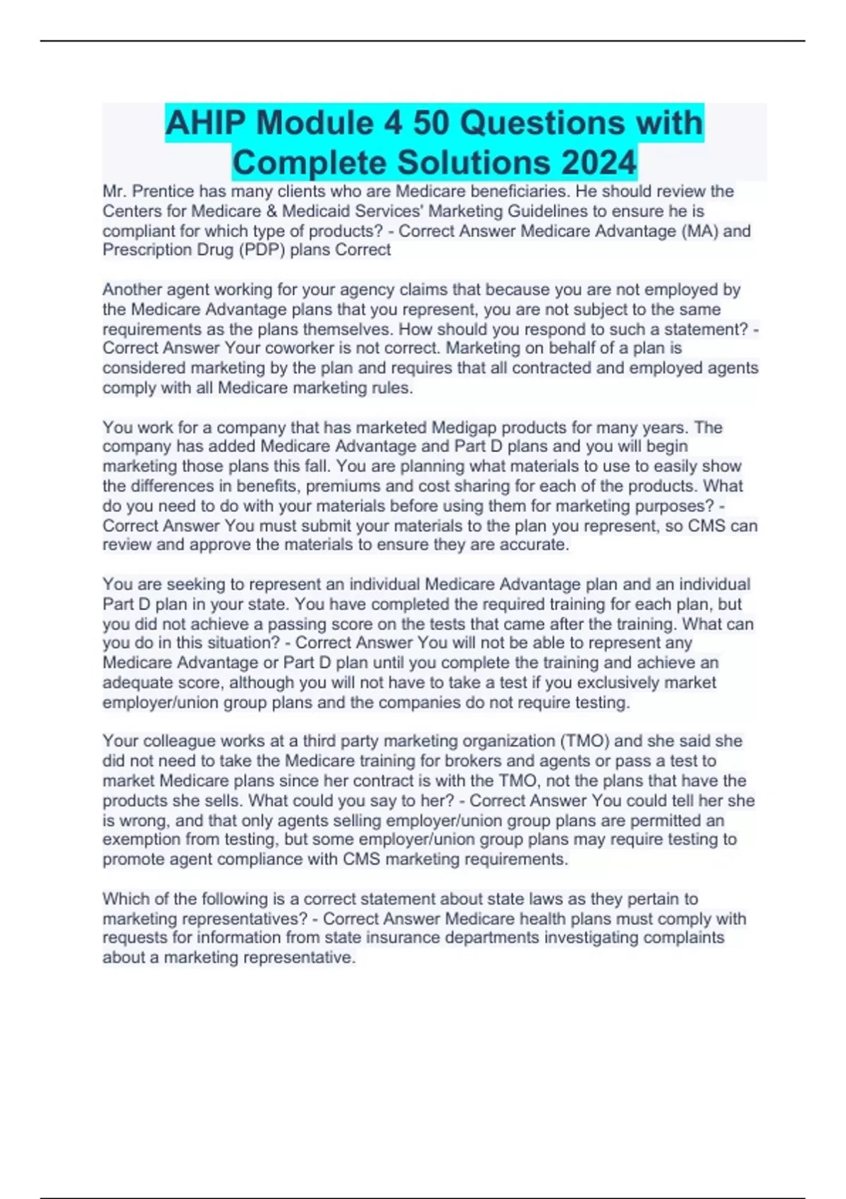 AHIP Module 4 50 Questions with Complete Solutions 2024