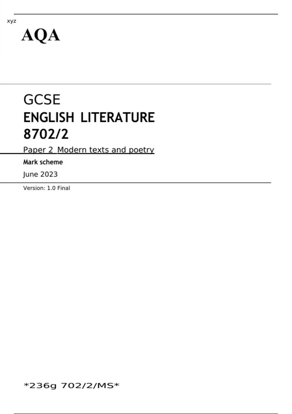AQA GCSE ENGLISH LITERATURE Paper 2 JUNE 2023 MARK SCHEME: Modern texts and poetry