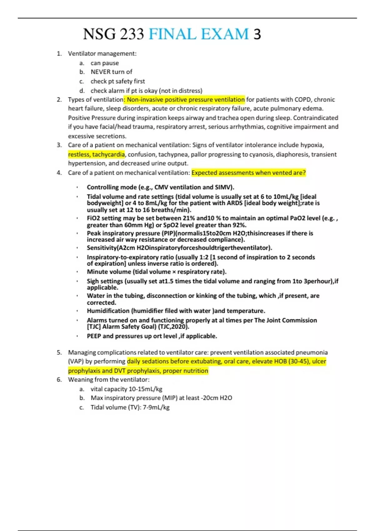NSG 233 Exam 3 Med Surg 2 NSG 233 Exam 3 Med Surg 2 NSG 233 Exam 3 Med Surg 2