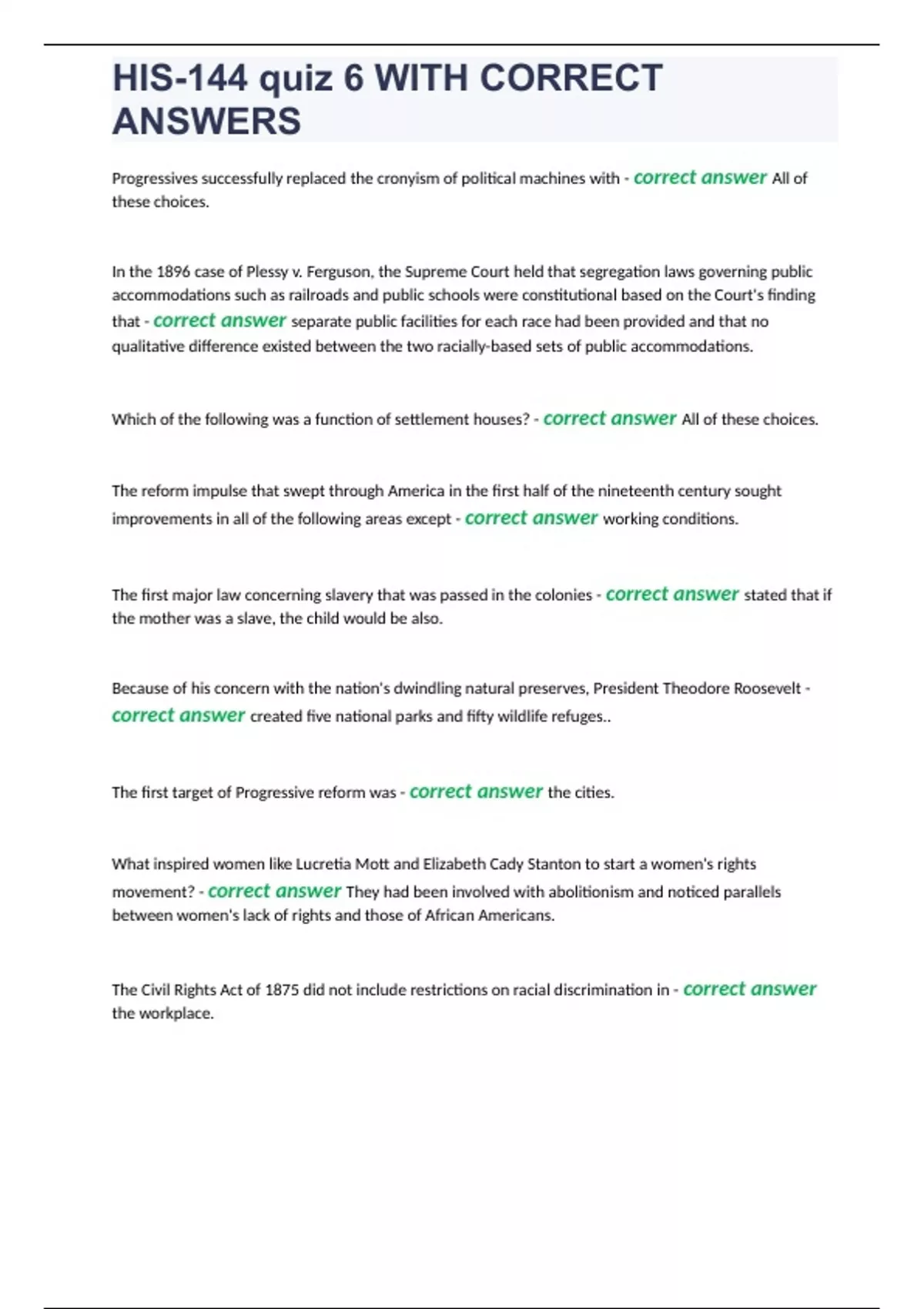 his 144 quiz 6 with correct answers