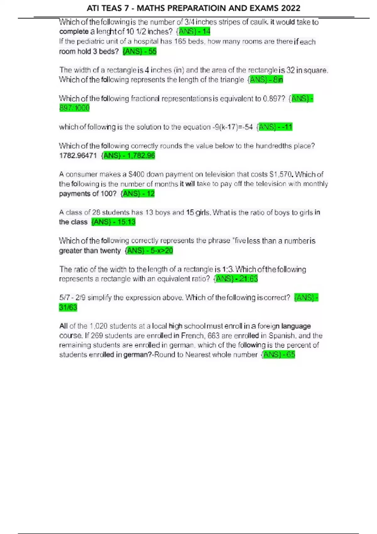 ATI TEAS 7 - MATHS PREPARATIOIN AND EXAMS 2022