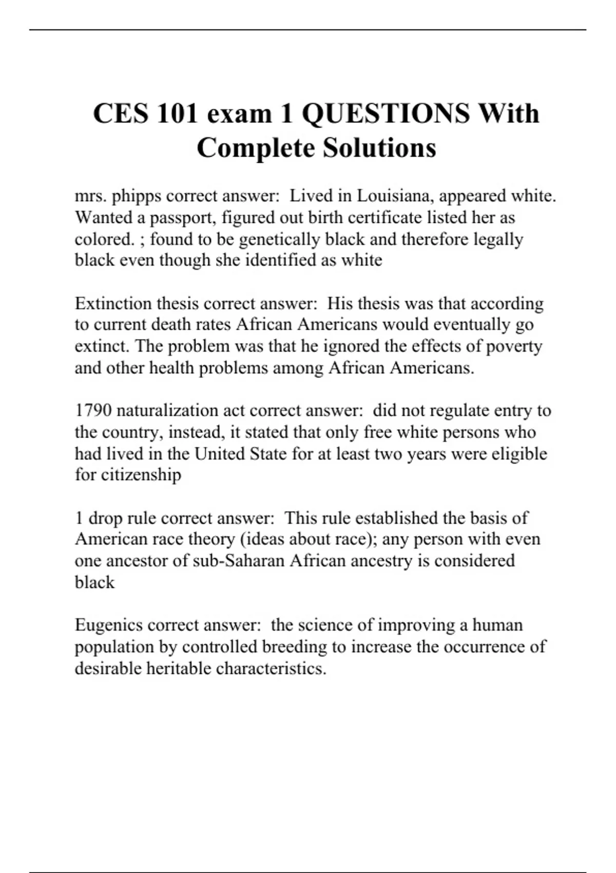 CES 101 exam 1 QUESTIONS With Complete Solutions
