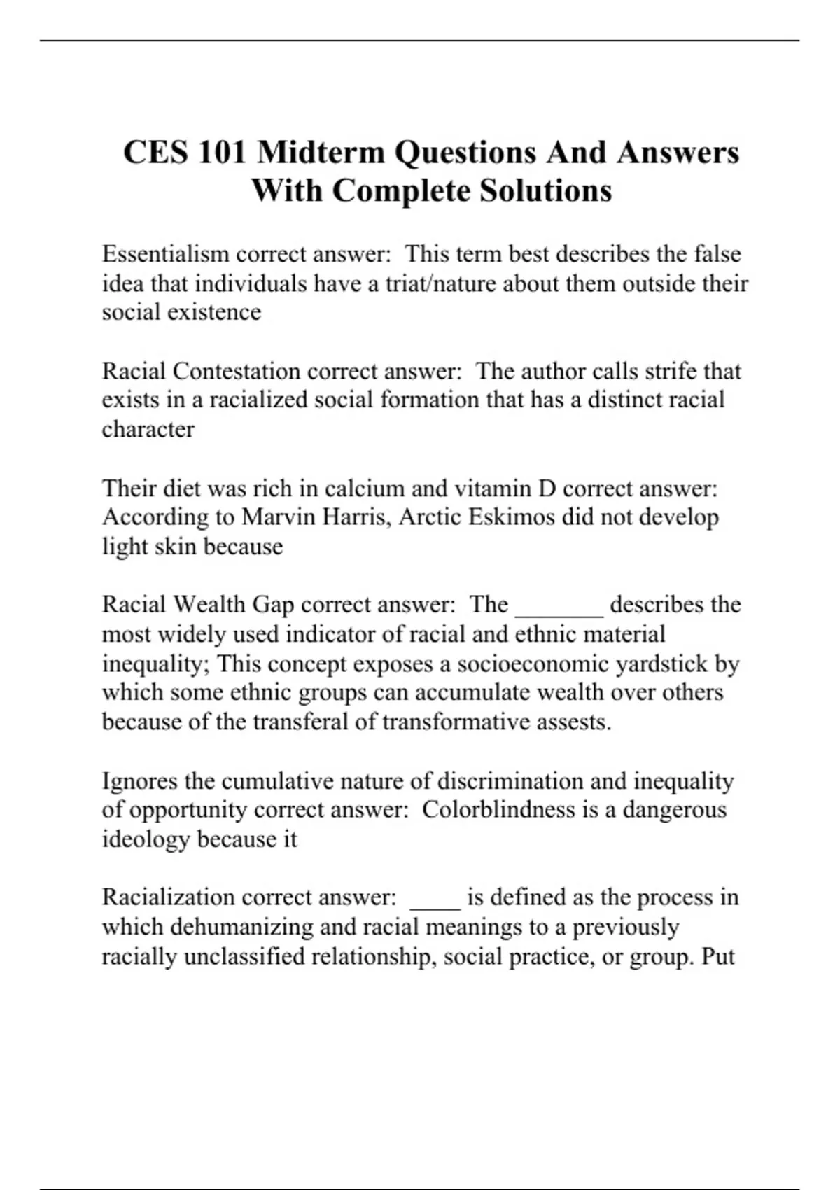 CES 101 Midterm Questions And Answers With Complete Solutions