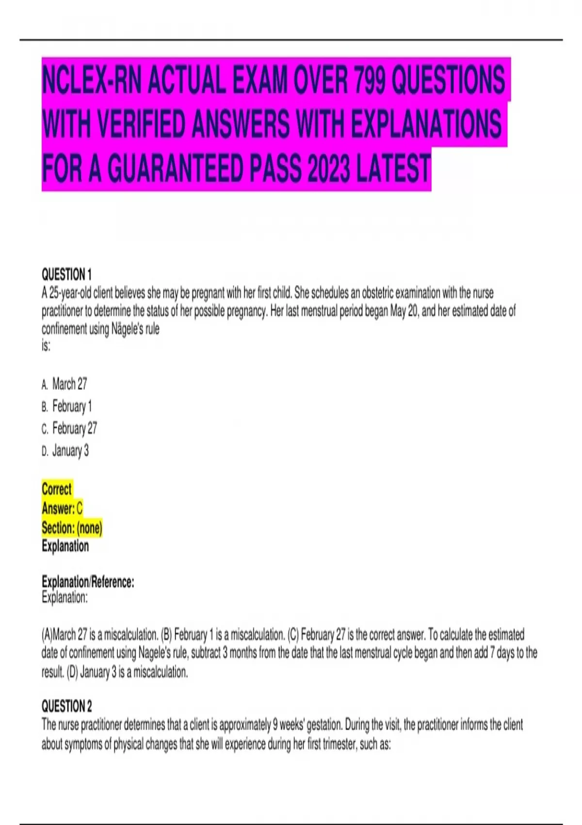 , NCLEX-RN ACTUAL EXAM OVER 799 QUESTIONS