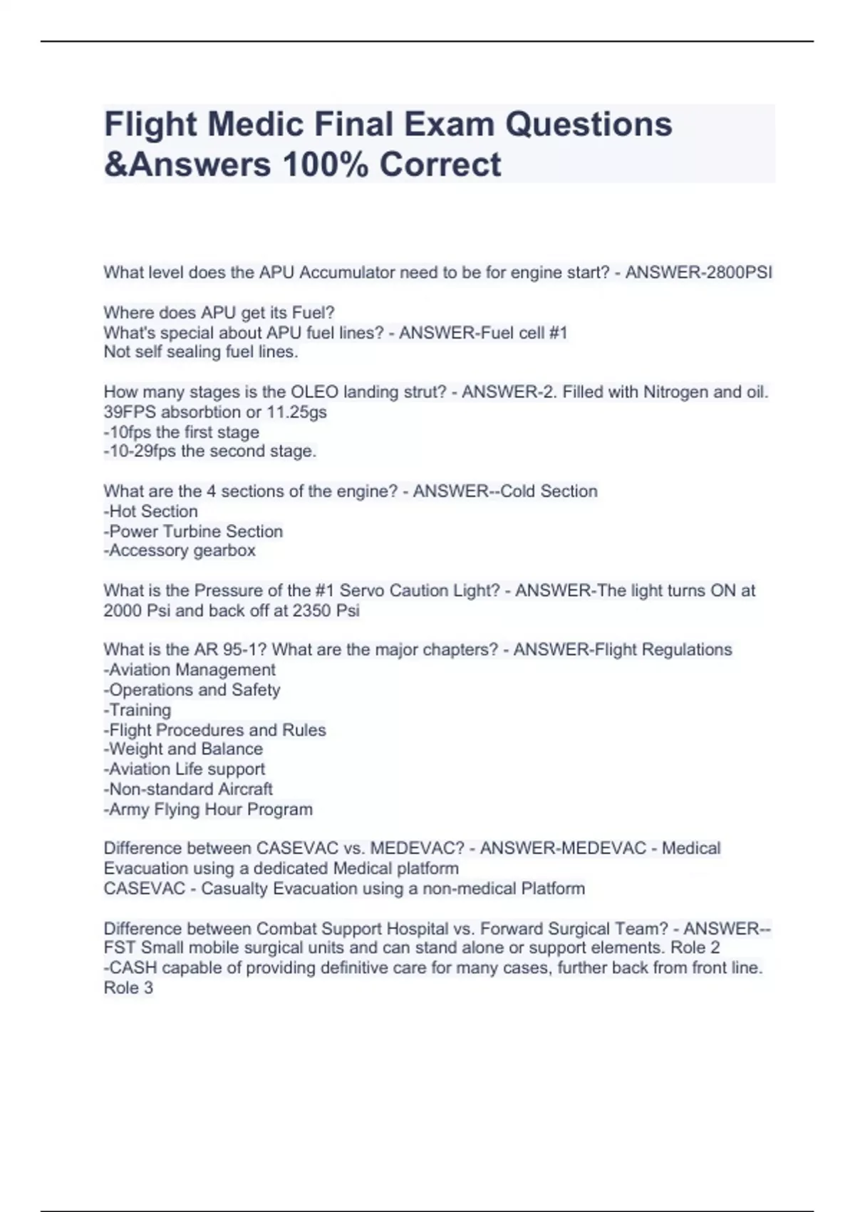 Flight Medic Final Exam Questions &Answers 100% Correct
