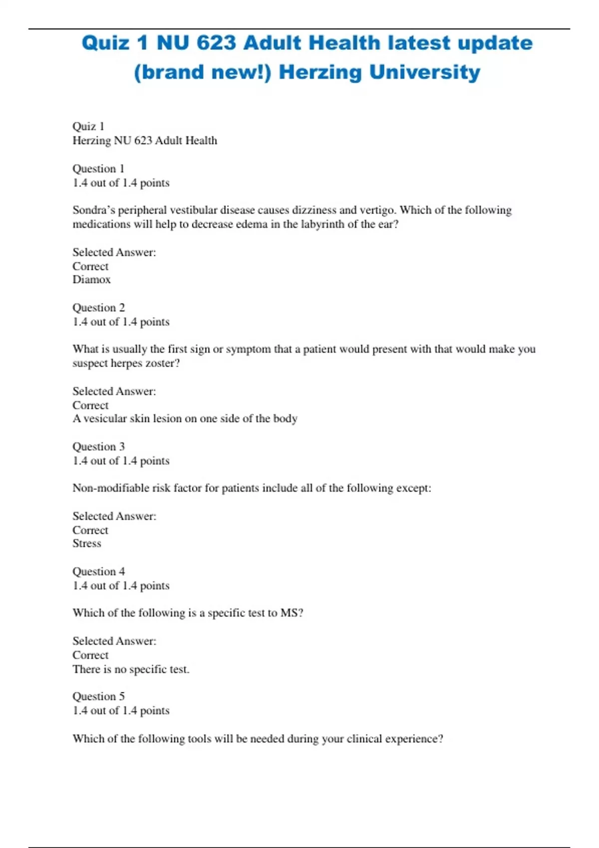 Herzing NU 623 Adult Health