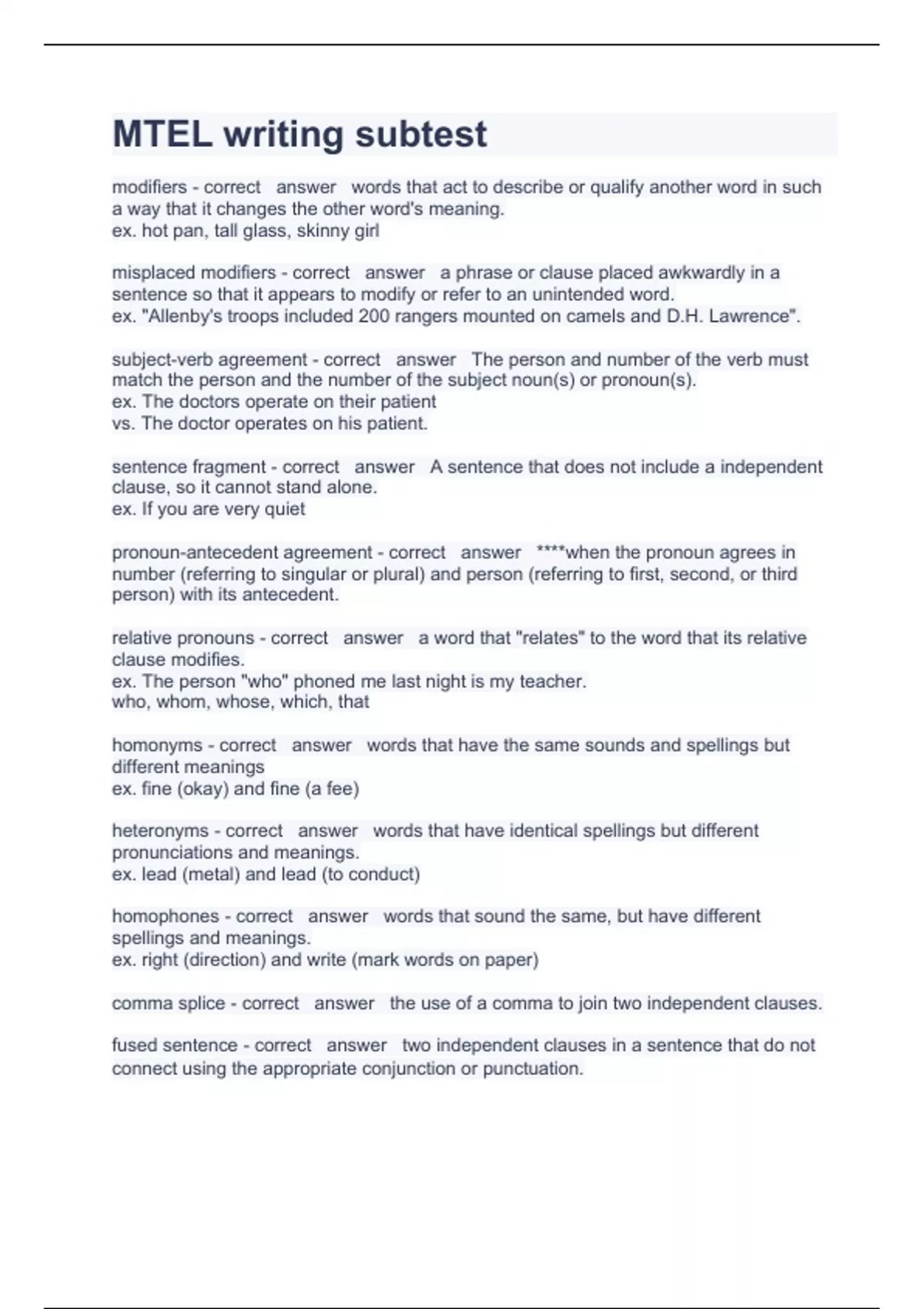 MTEL writing subtest Question and answers correctly solved 2023