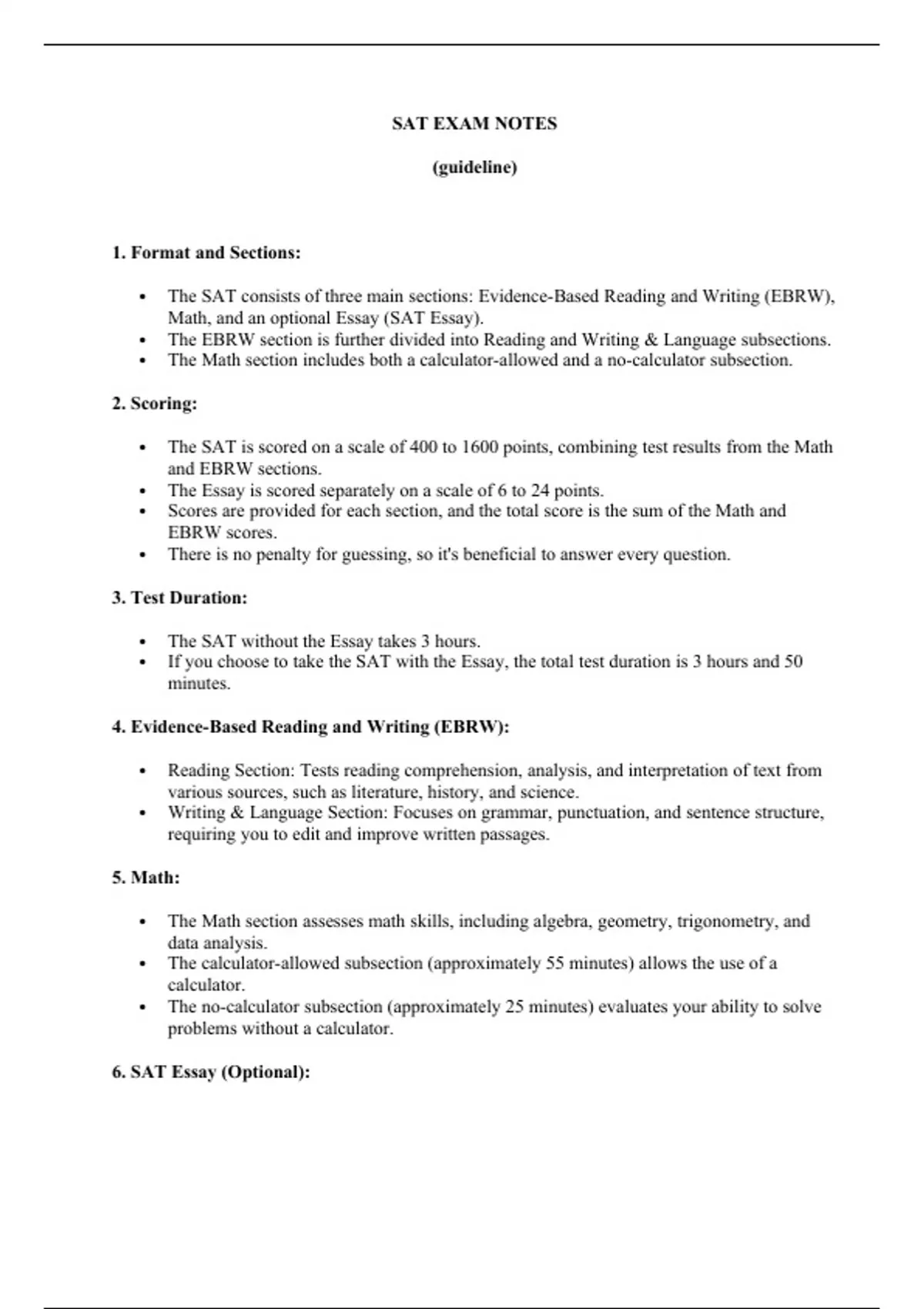 Are you or someone you know preparing for the SAT, the crucial standardized test that can significantly impact college admissions? Look no further than this comprehensive SAT Exam Guide, a meticulously crafted resource that provides in-depth information, strategies, and tips to help you ace the SAT with confidence. What's Inside: Understanding the SAT: This guide starts with an introduction to the SAT, explaining its significance in the college admissions process and its widespread acceptance by colleges and universities across the United States. SAT Format: Dive deep into the SAT format, including its three main sections - Evidence-Based Reading and Writing (EBRW), Math, and the optional Essay (SAT Essay). Learn how each section is structured and what it assesses. Scoring on the SAT: Uncover the secrets of SAT scoring, including how scores are calculated, the range of possible scores, and the absence of penalties for guessing. Test Duration: Get a clear picture of the time constraints you'll face on test day, including the duration of each section. Evidence-Based Reading and Writing (EBRW): Explore the EBRW section, which assesses critical reading, language, and writing skills. Understand the Reading and Writing & Language subsections in detail. Who Will Benefit: High school students planning to take the SAT for college admissions. Parents looking to support their children in SAT preparation. Educators and tutors seeking a comprehensive guide to help students succeed on the SAT. Anyone involved in college admissions or counseling. Why Choose This Guide: Comprehensive Coverage: This guide breaks down every aspect of the SAT, from test format to registration, preparation strategies to test day tips, and beyond. Expert Insights: Benefit from expert tips and strategies that can make a significant difference in your SAT performance. Structured Learning: Chapters are organized logically, allowing for easy navigation and focused study. High-Quality Content: You'll find accurate and up-to-date information, ensuring you have the best resources at your fingertips. Whether you're aiming for a top-tier college or looking to improve your SAT score for scholarship opportunities, this SAT Exam Guide is your go-to resource. It empowers you to navigate the SAT with confidence, boost your chances of success, and embark on your journey to higher education with a competitive edge. Don't miss out on this valuable resource! Purchase the Comprehensive SAT Exam Guide today and start your path to SAT success. Feel free to tailor and expand upon this description to suit your selling platform and audience.