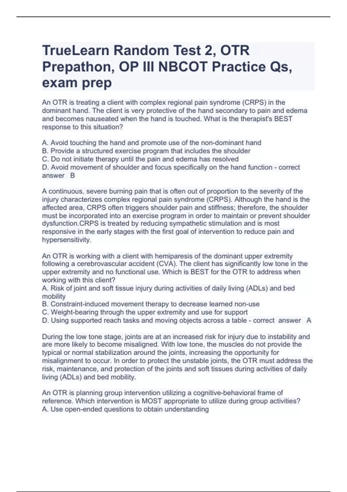 PACKAGE DEAL OF NABCOT OTR QUESTION AND ANSWERS RATED A+ 2023