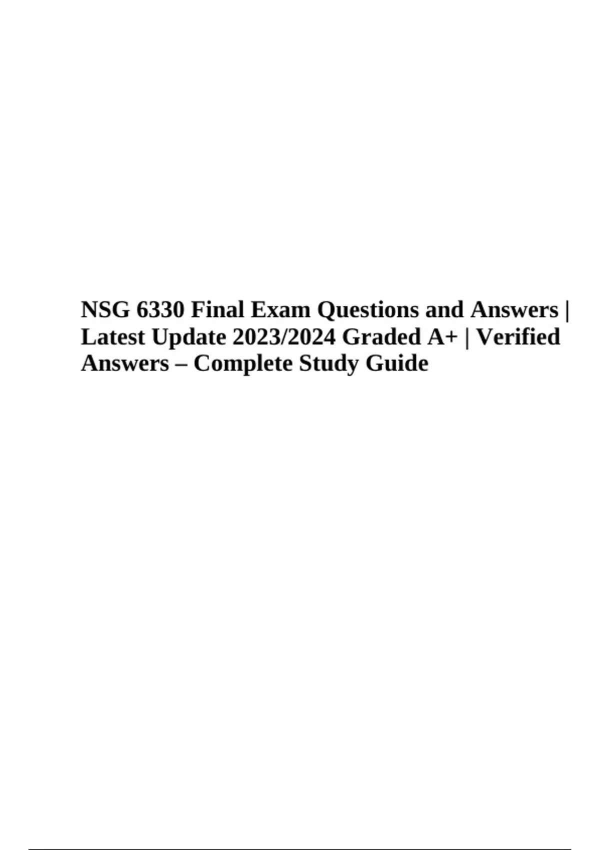 NSG 6330 Final Exam Questions and Answers Latest Update 2023/2024 Graded A+