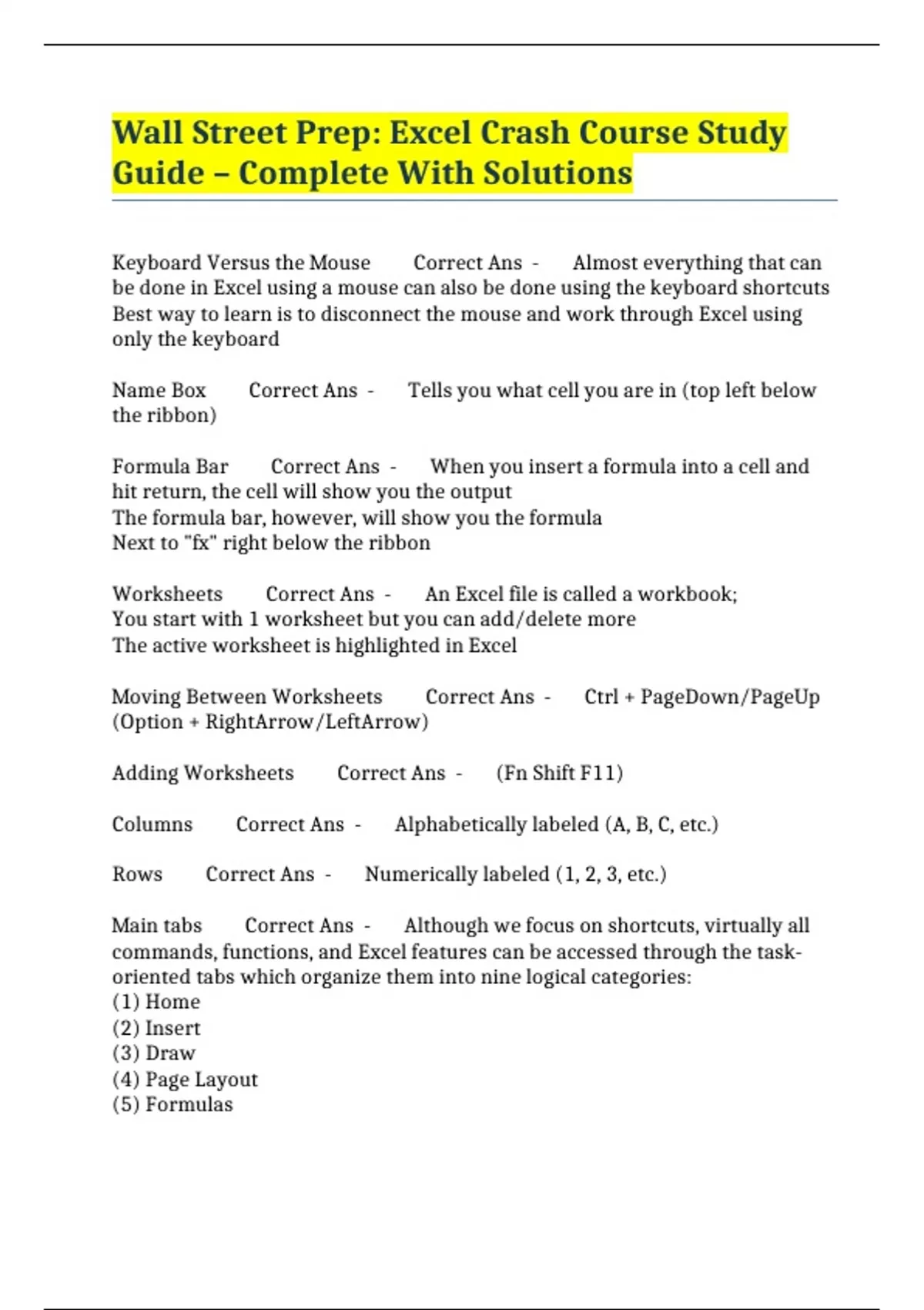 Wall Street Prep: Excel Crash Course Study Guide – Complete With Solutions