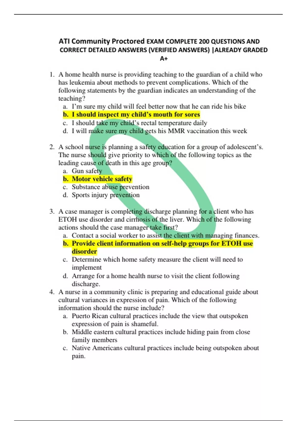 ATI Community Proctored EXAM COMPLETE 200 QUESTIONS AND CORRECT DETAILED ANSWERS (VERIFIED ANSWERS) |ALREADY GRADED A+