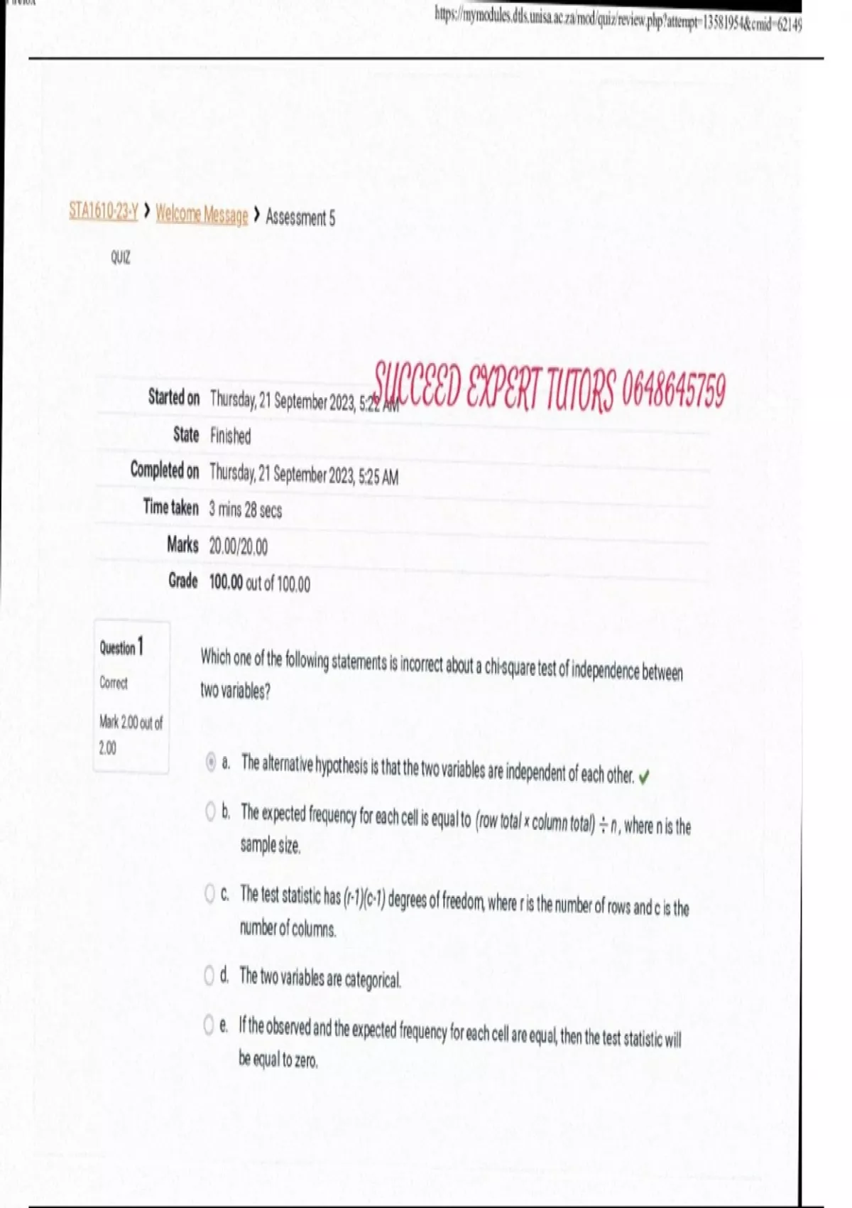 sta1610 assignment 5 solutions 2023 year module