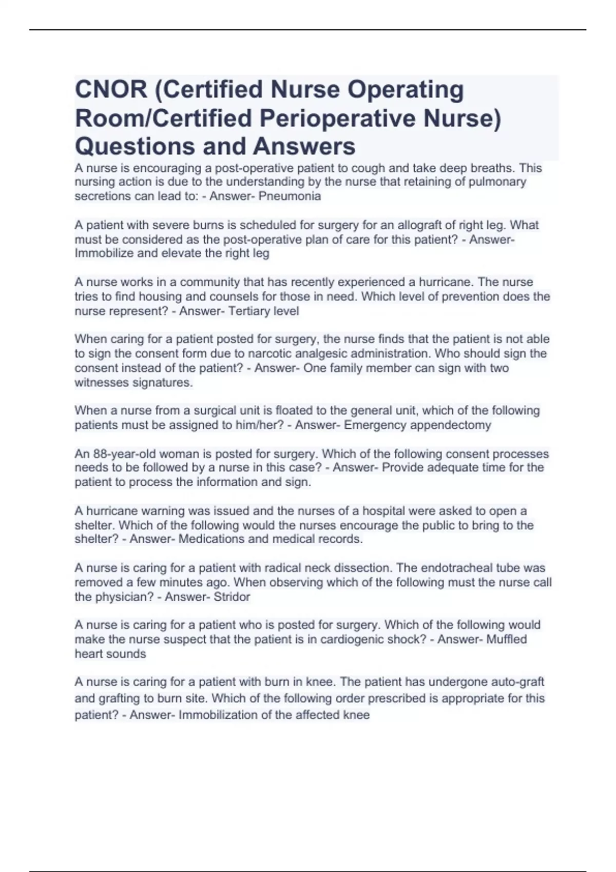 CNOR (Certified Nurse Operating Room/Certified Perioperative Nurse) Questions and Answers