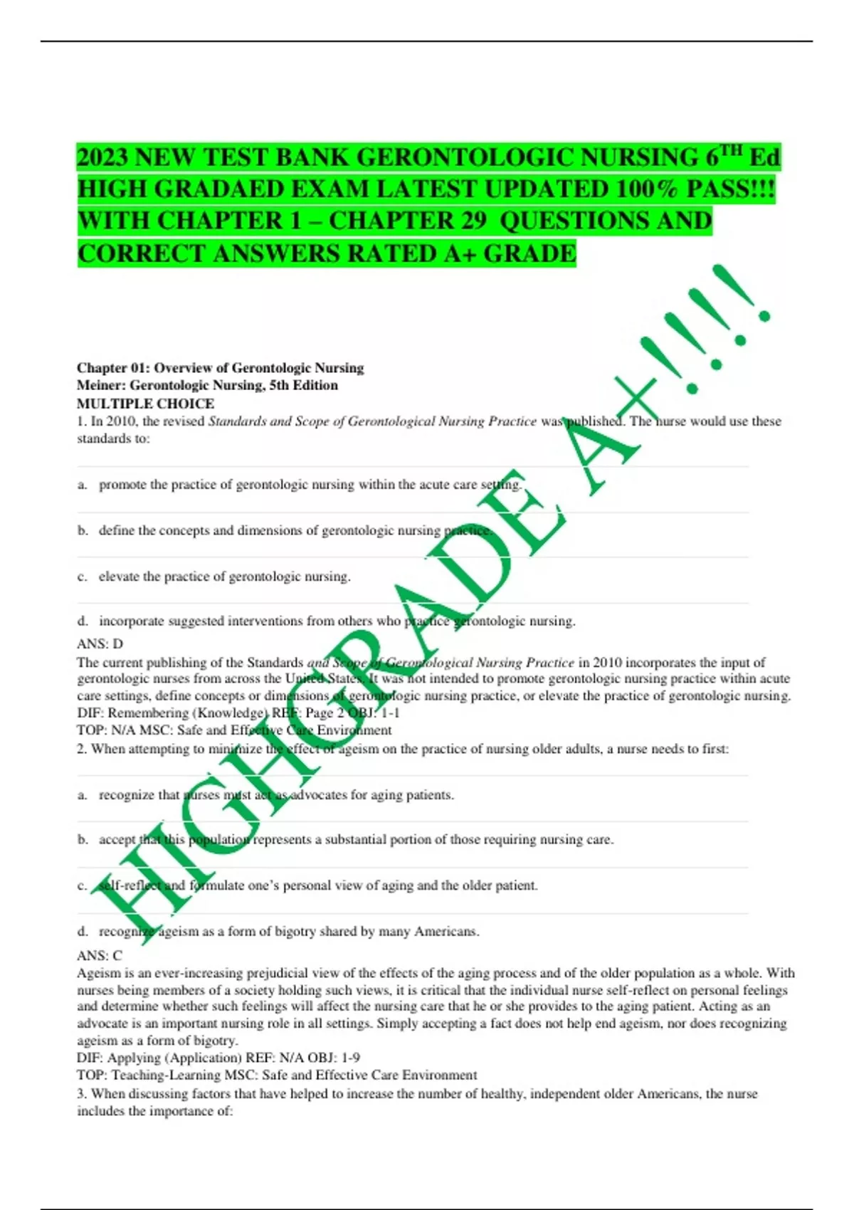 2023 NEW TEST BANK GERONTOLOGIC NURSING 6TH Ed HIGH GRADAED EXAM LATEST UPDATED 100% PASS!!! WITH CHAPTER 1 – CHAPTER 29 QUESTIONS AND CORRECT ANSWERS RATED A+ GRADE