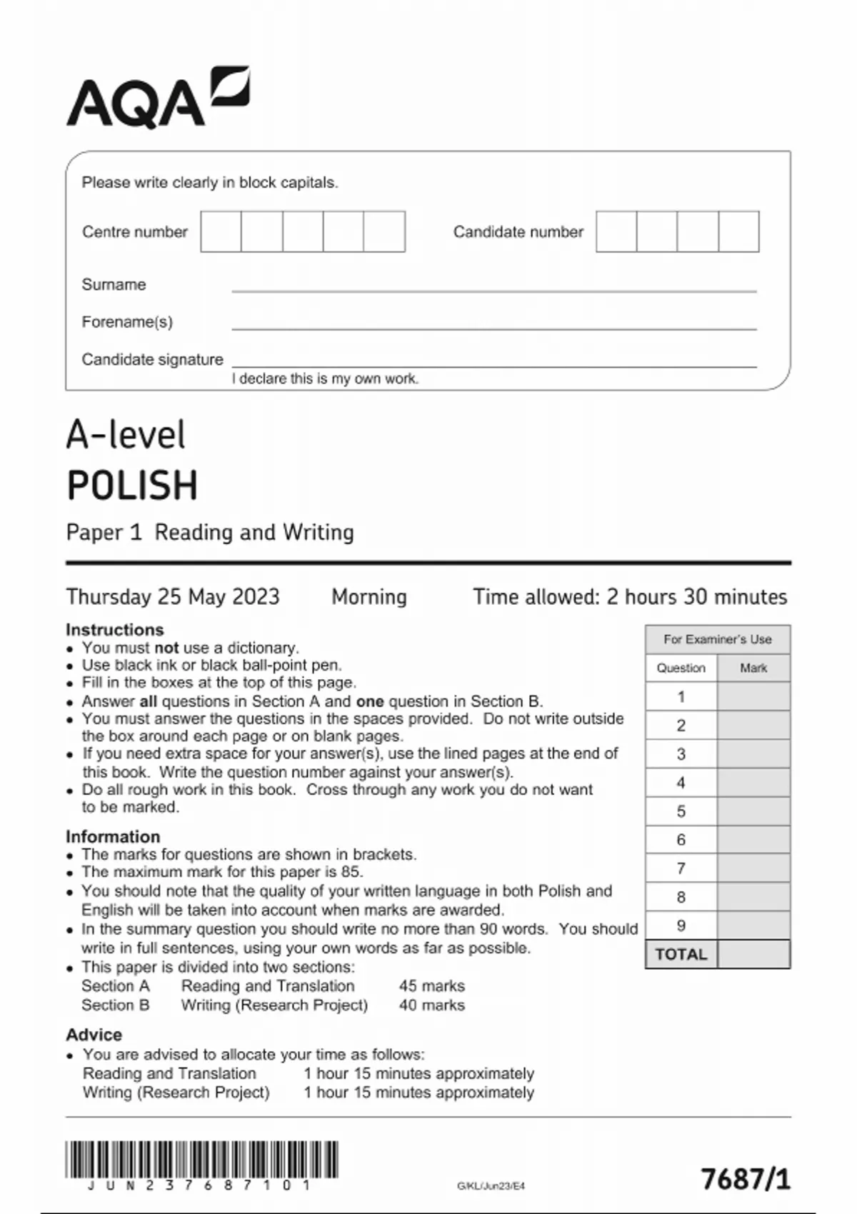 - AQA A LEVEL POLISH PAPER 1 MAY 2023 QUESTION PAPER