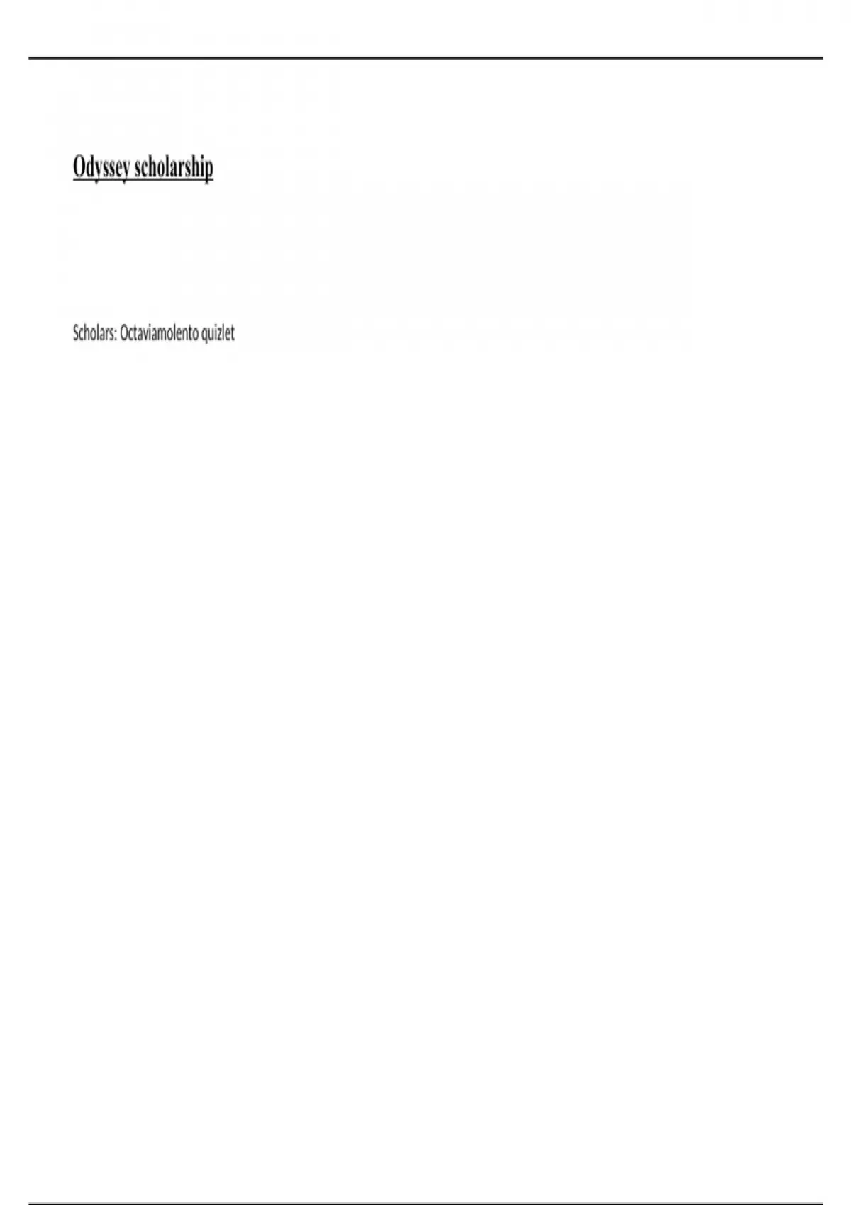This document provides scholars for every theme and all major characters in the Odyssey - as laid out by the OCR exam board. It breaks each theme down and gives around 3-5 scholars for each theme, in order to remember easily. It gives both the direct quote for the scholar and a general summary of their 'point' including examples of where this is found in the text. Some examples are not included, as this is a good exercise to go through in order to more easily memorise the quotes.