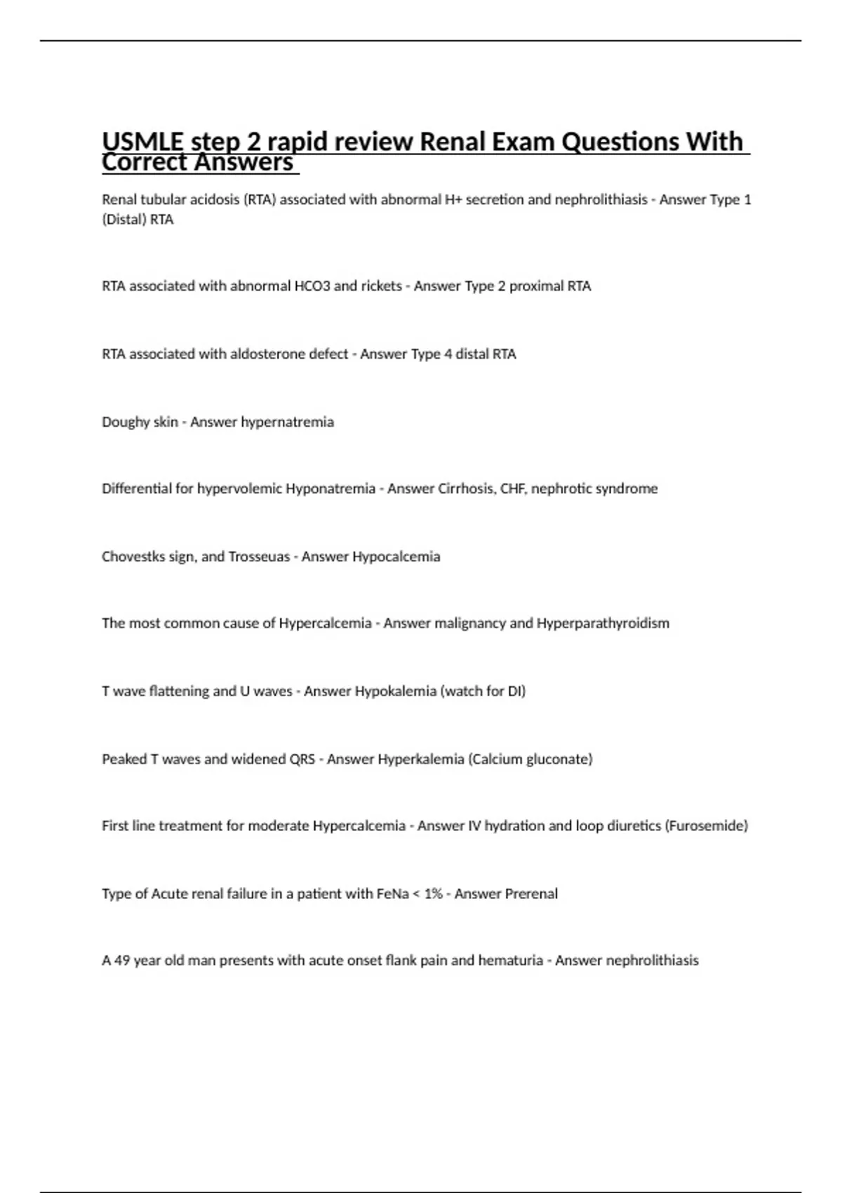USMLE step 2 rapid review Renal Exam Questions With Correct Answers