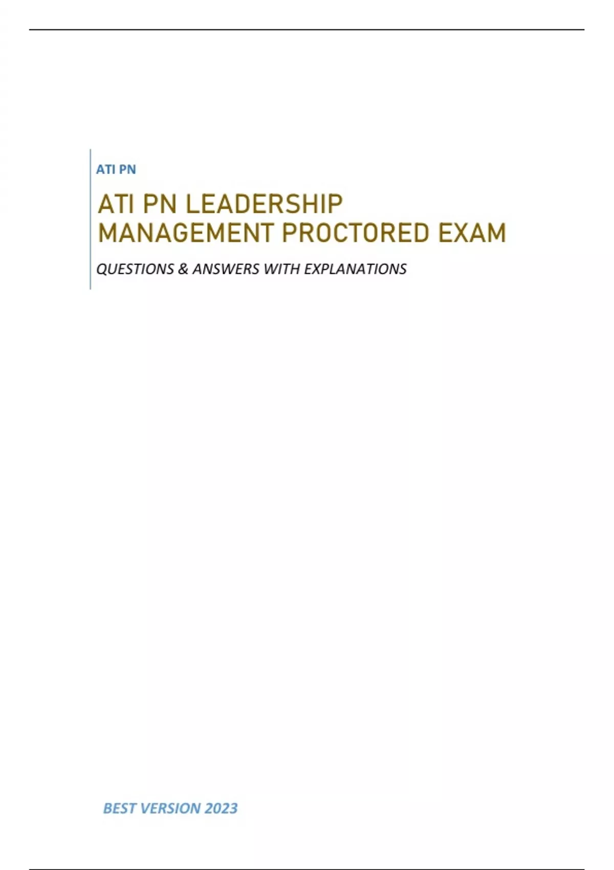ATI PN LEADERSHIP MANAGEMENT PROCTORED EXAM - (GRADED A+) QUESTIONS & ANSWERS WITH EXPLANATIONS 2023