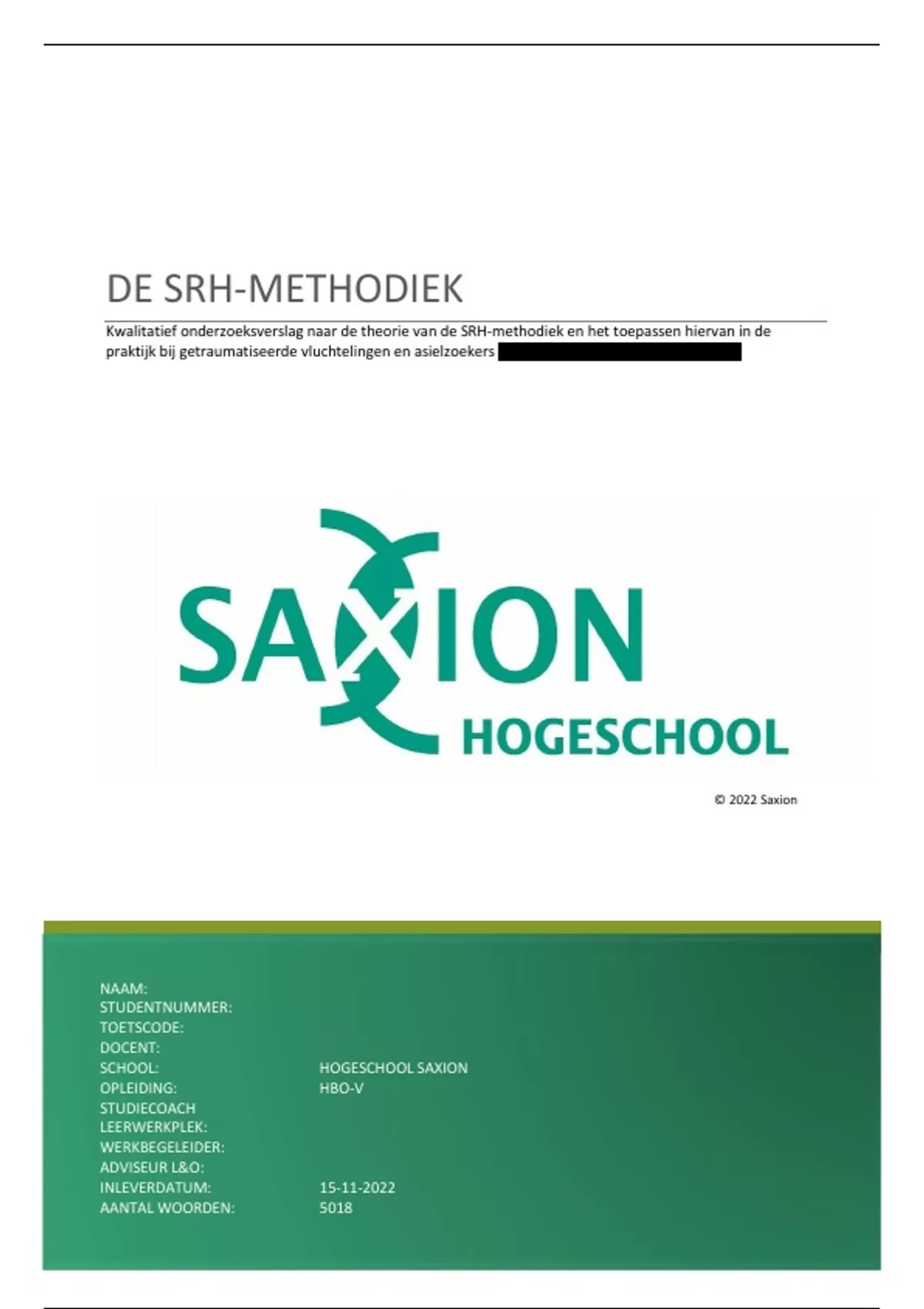 Kwalitatief onderzoeksverslag naar de theorie van de SRH-methodiek en het toepassen hiervan in de