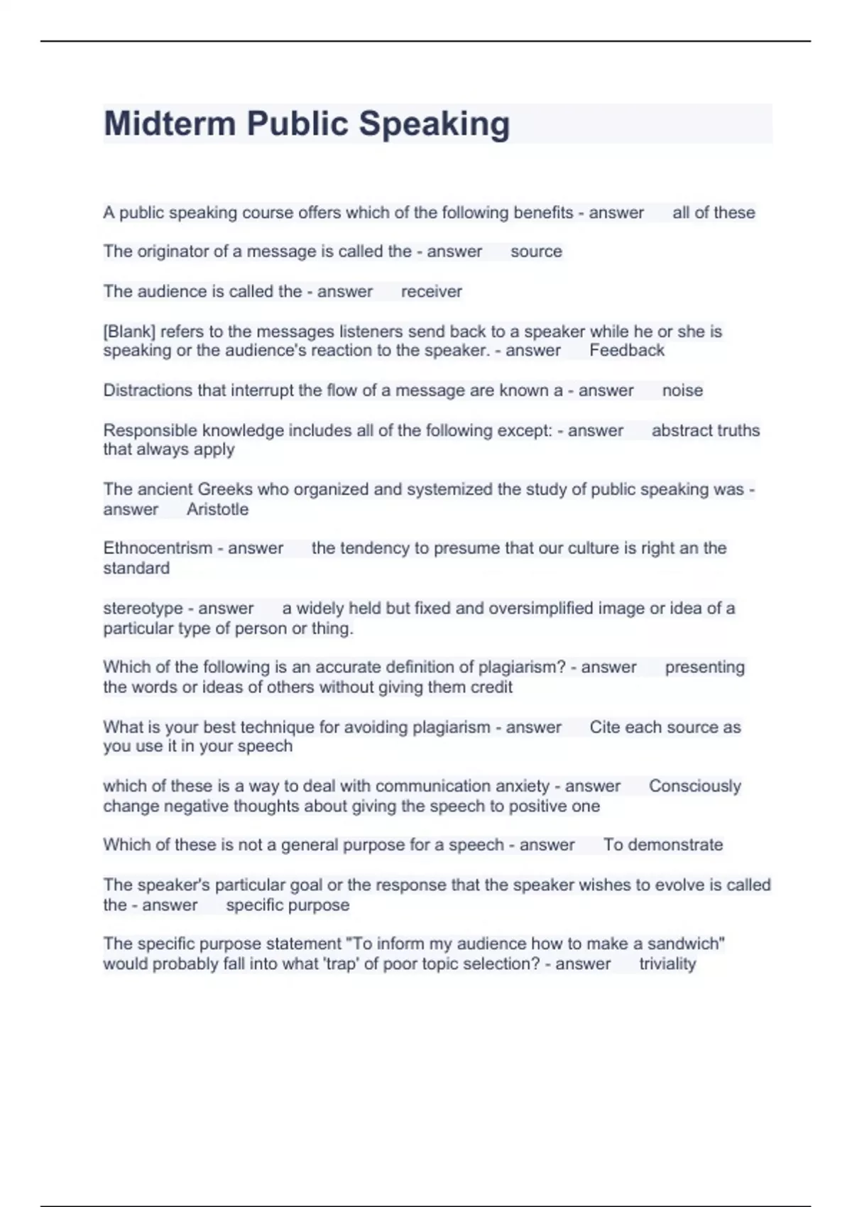 Midterm Public Speaking Questions with solutions 2023