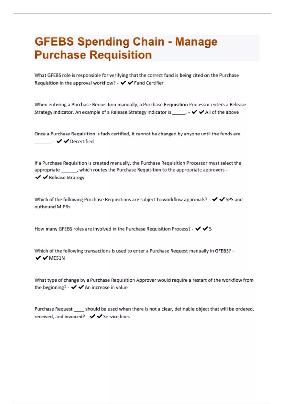 GFEBS Spending Chain - Manage Purchase Requisition | Questions and Answers(A+ Solution guide)