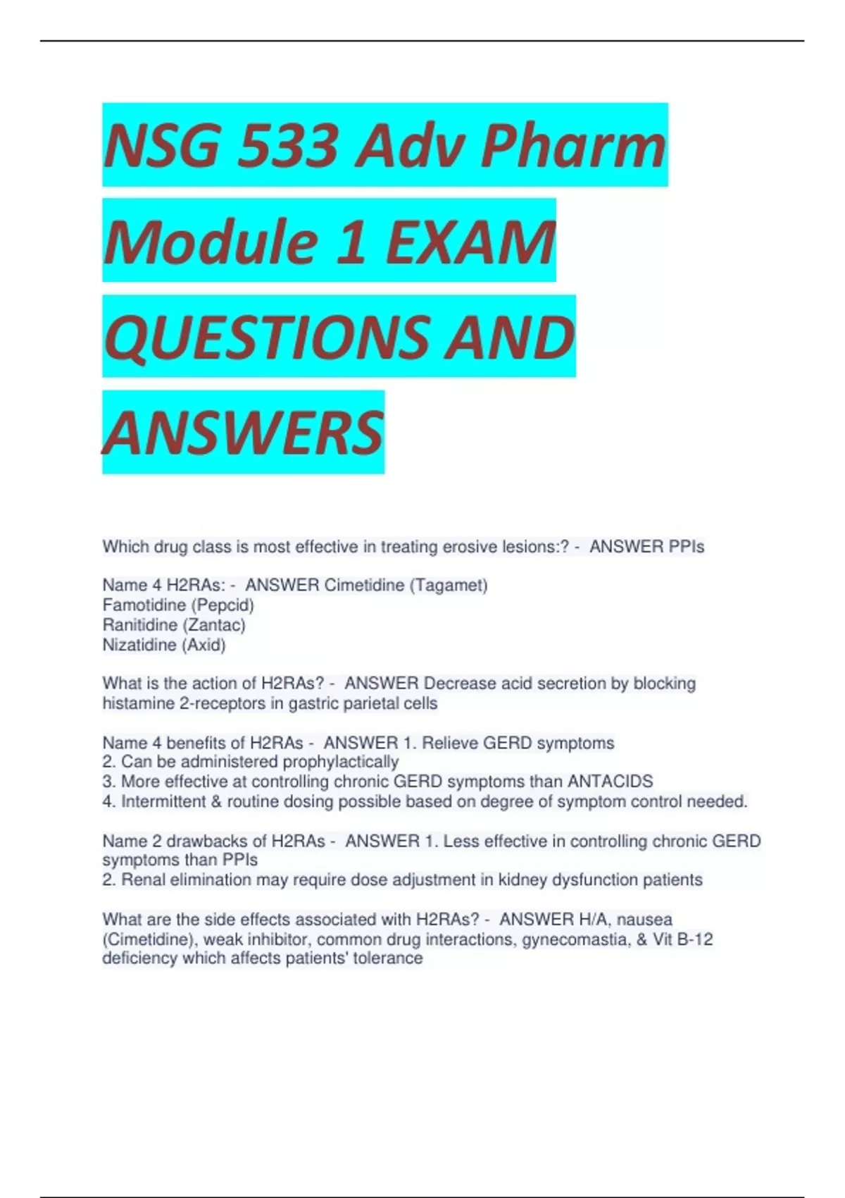 NSG 533 Adv Pharm Module 1 EXAM QUESTIONS AND ANSWERS