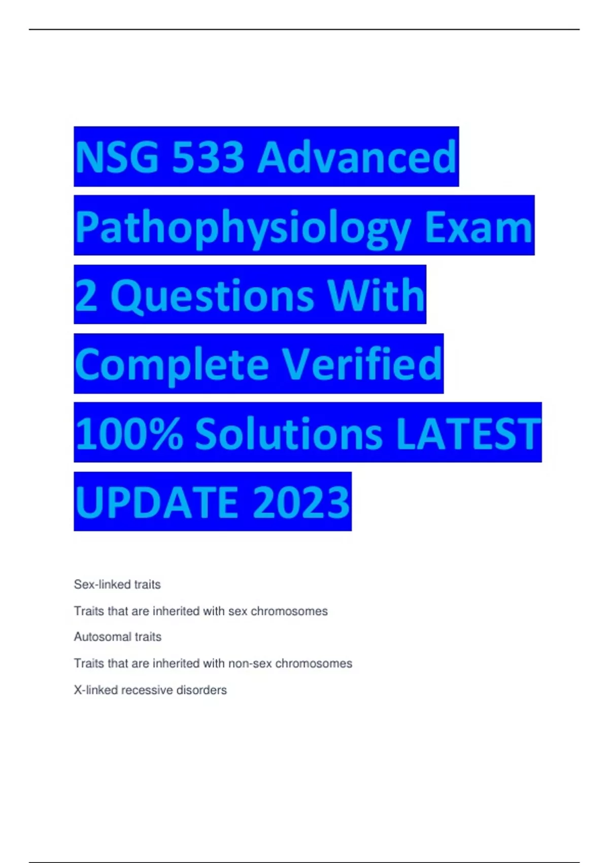 NSG 533 Advanced Pathophysiology Exam 2 Questions With Complete Verified 100% Solutions LATEST UPDATE 2023
