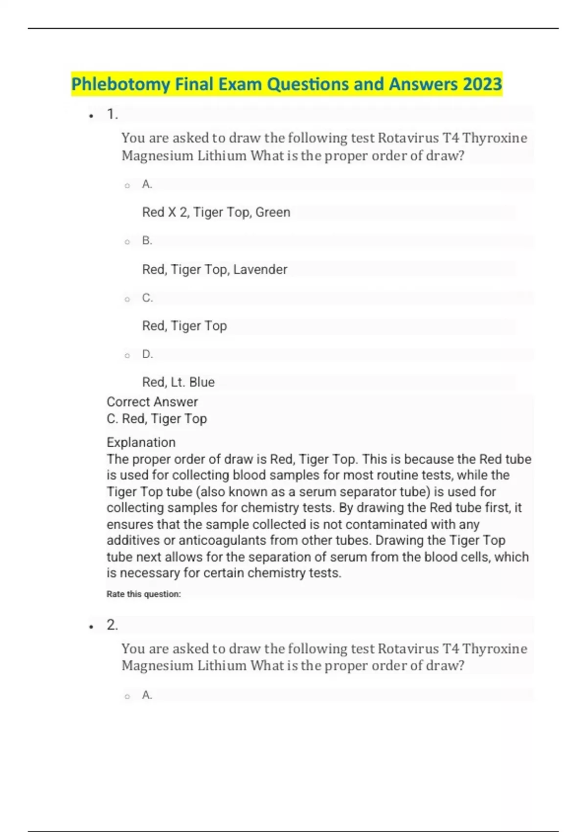Phlebotomy Final Exam Questions and Answers 2023