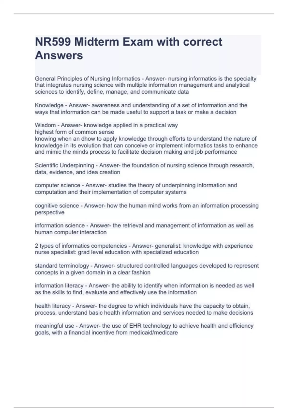 nr599 midterm exam with correct answers