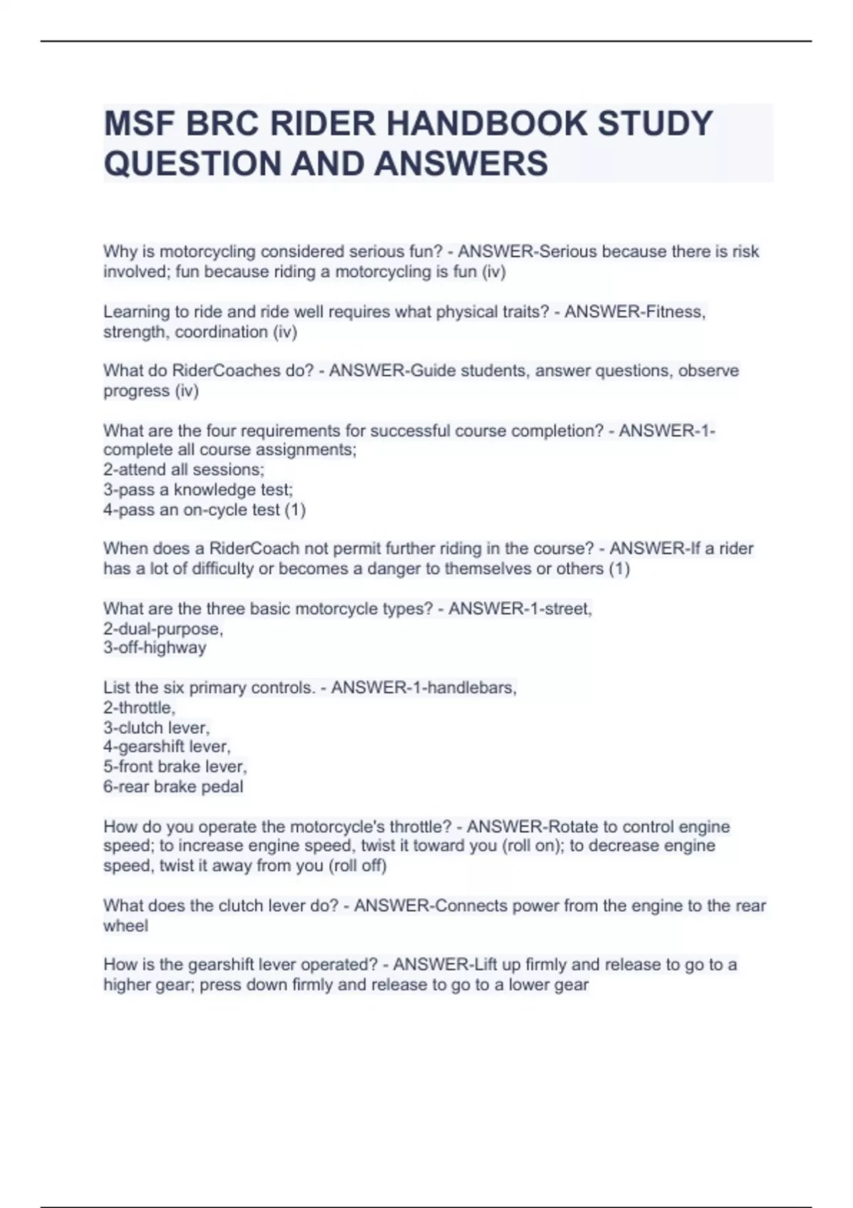 MSF BRC RIDER HANDBOOK STUDY QUESTION AND ANSWERS