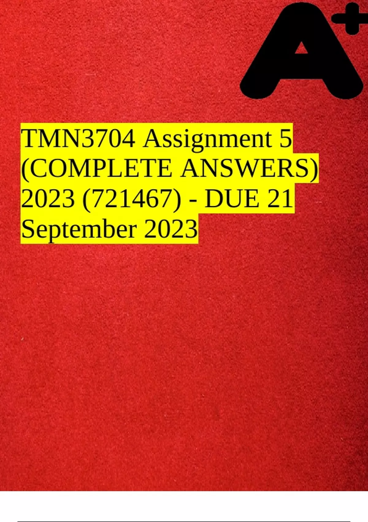 TMN3704 Assignment 5 (COMPLETE ANSWERS) 2023 (721467) - DUE 21 September 2023