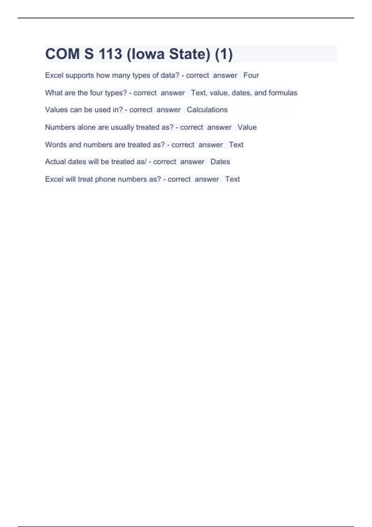 COM S 113 Question and answers rated A+ 2023