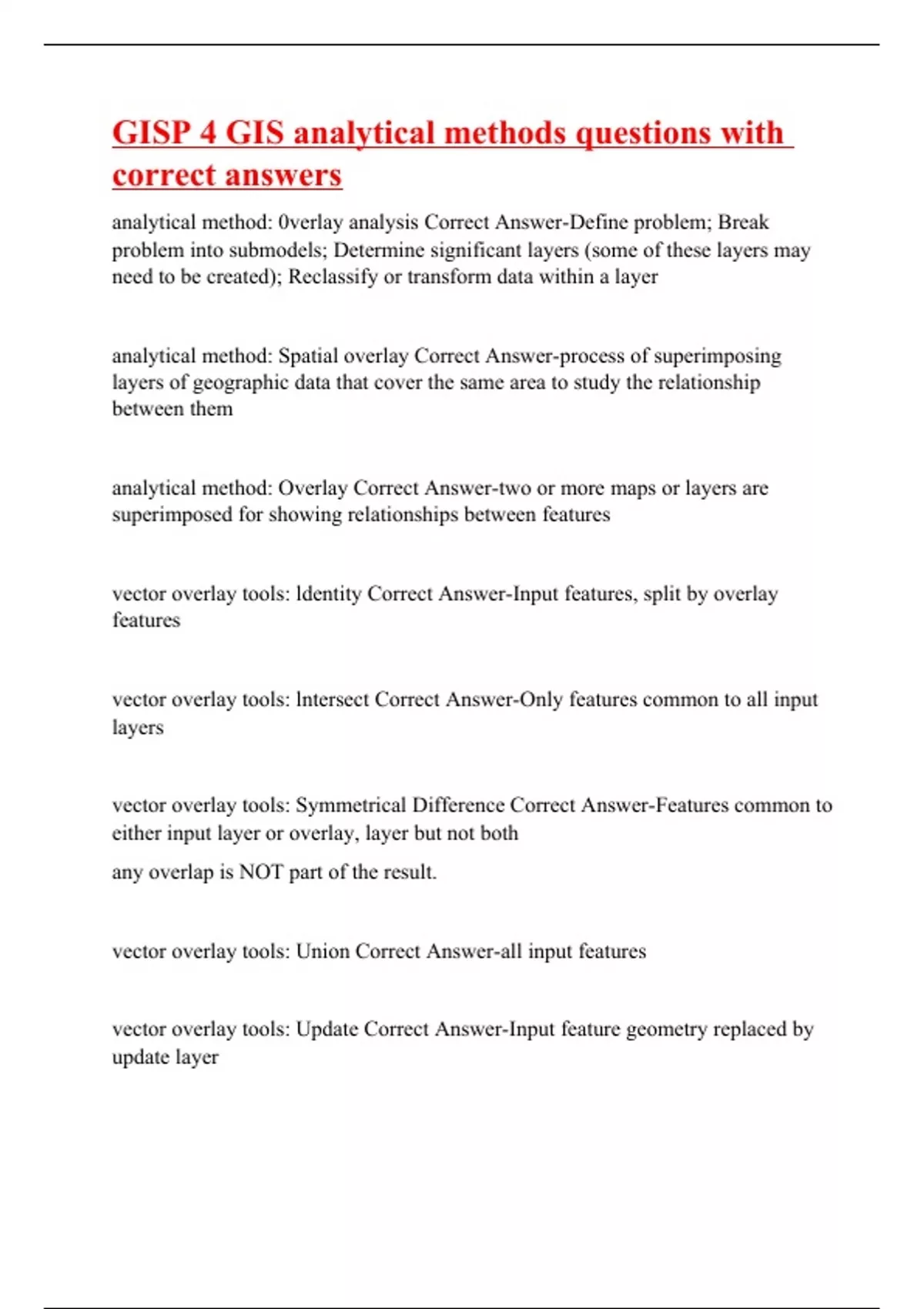 gisp 4 gis analytical methods questions with corre