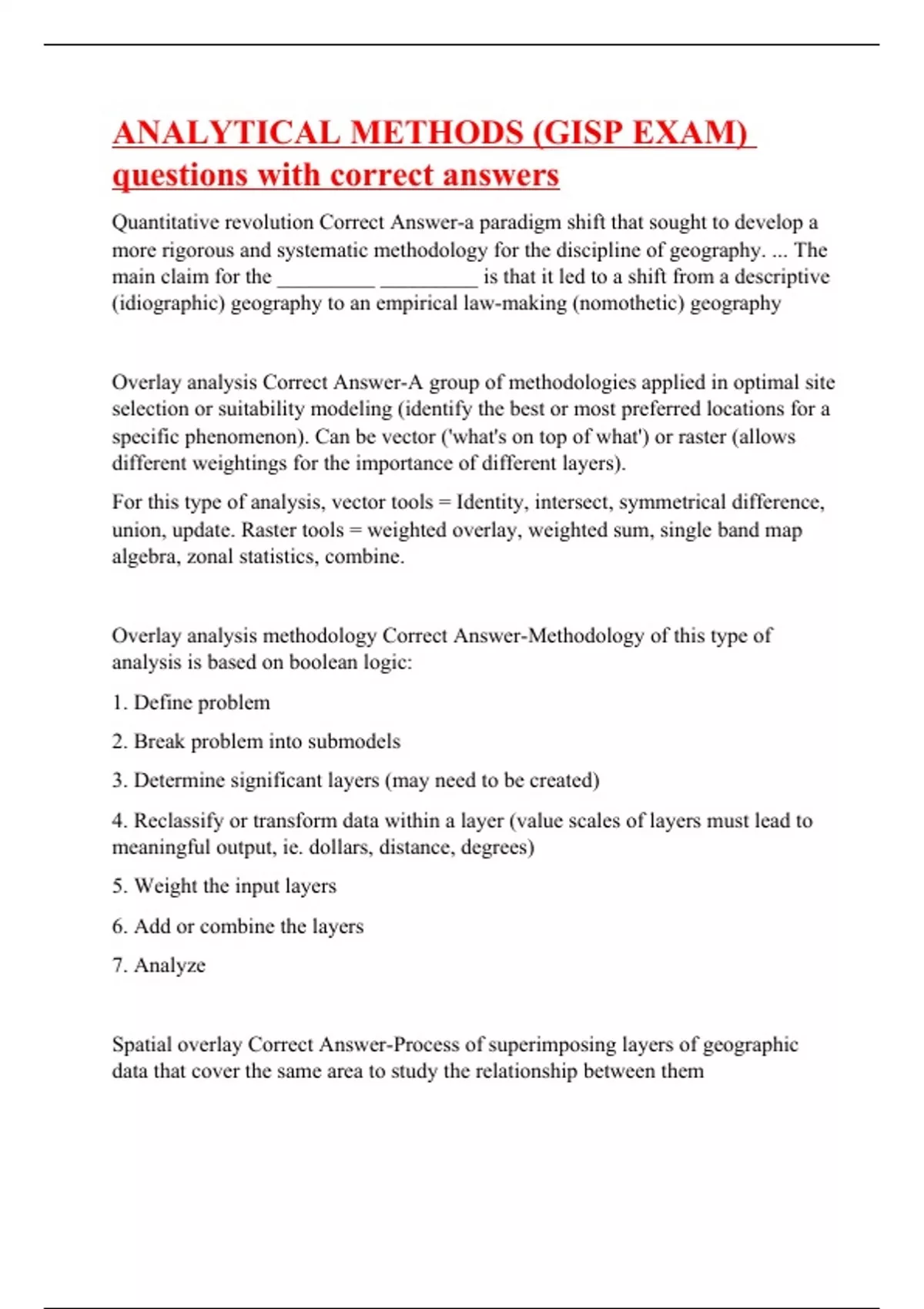 ANALYTICAL METHODS (GISP EXAM) questions with correct answers