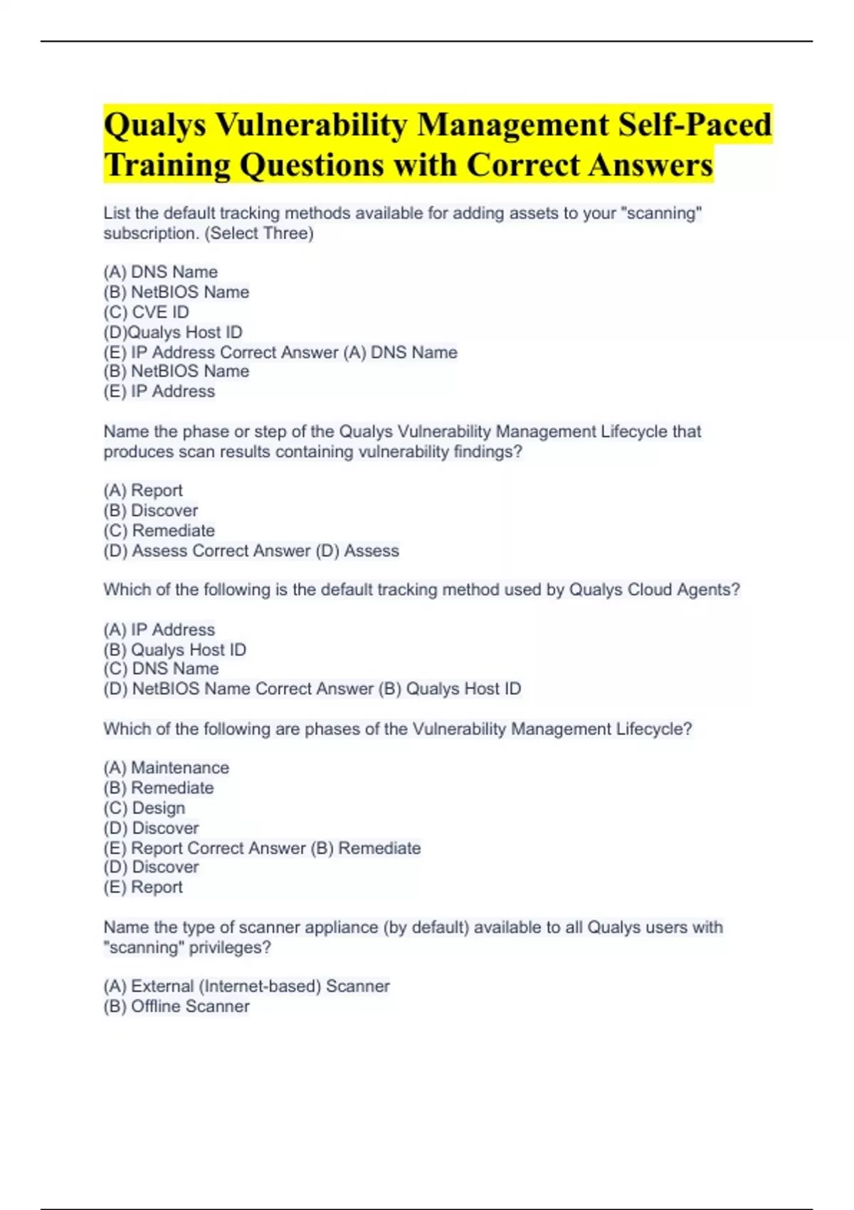 Qualys Vulnerability Management Self-Paced Training Questions with Correct Answers