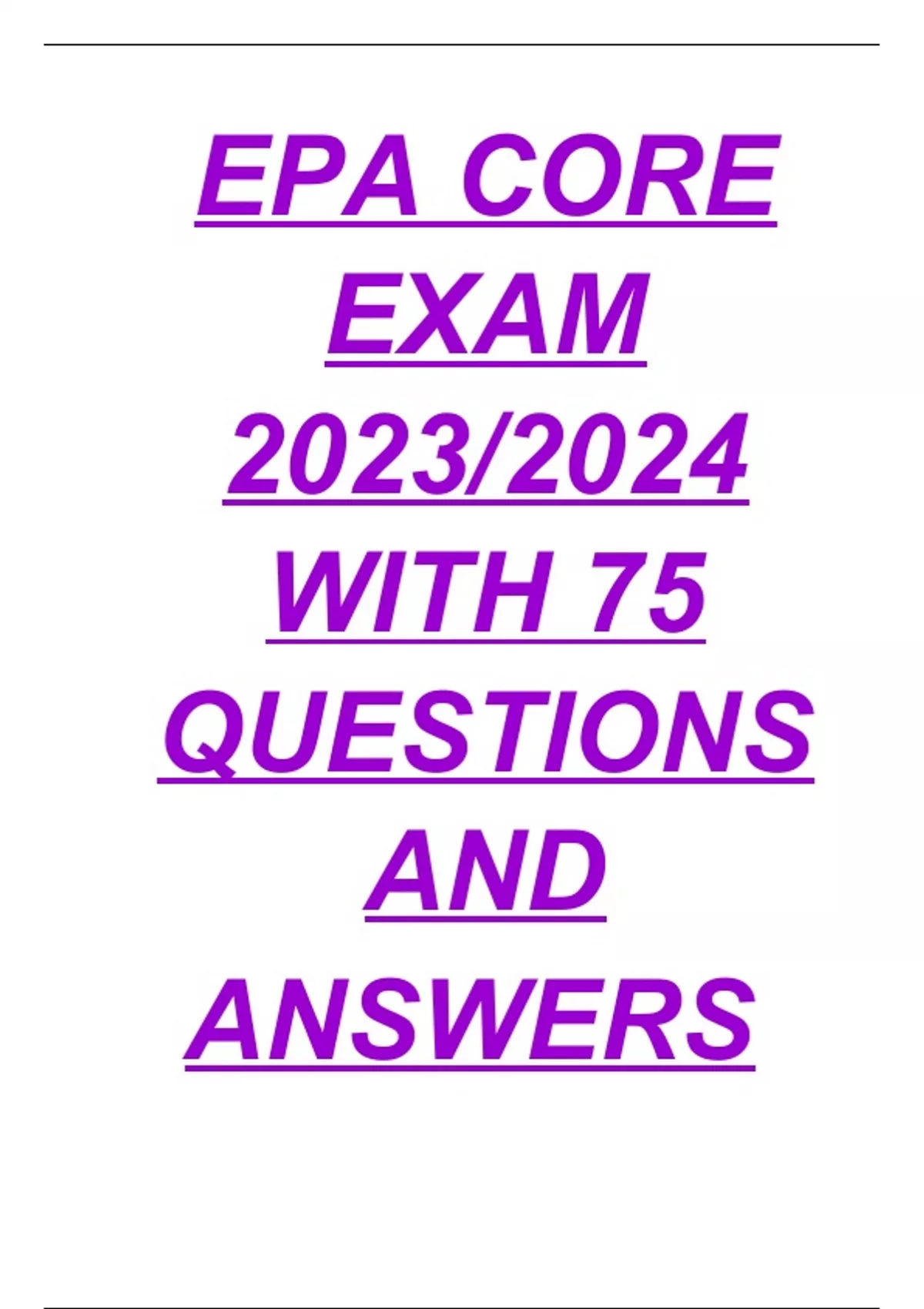 EPA CORE EXAM 2023/2024 WITH 75 QUESTIONS AND ANSWERS