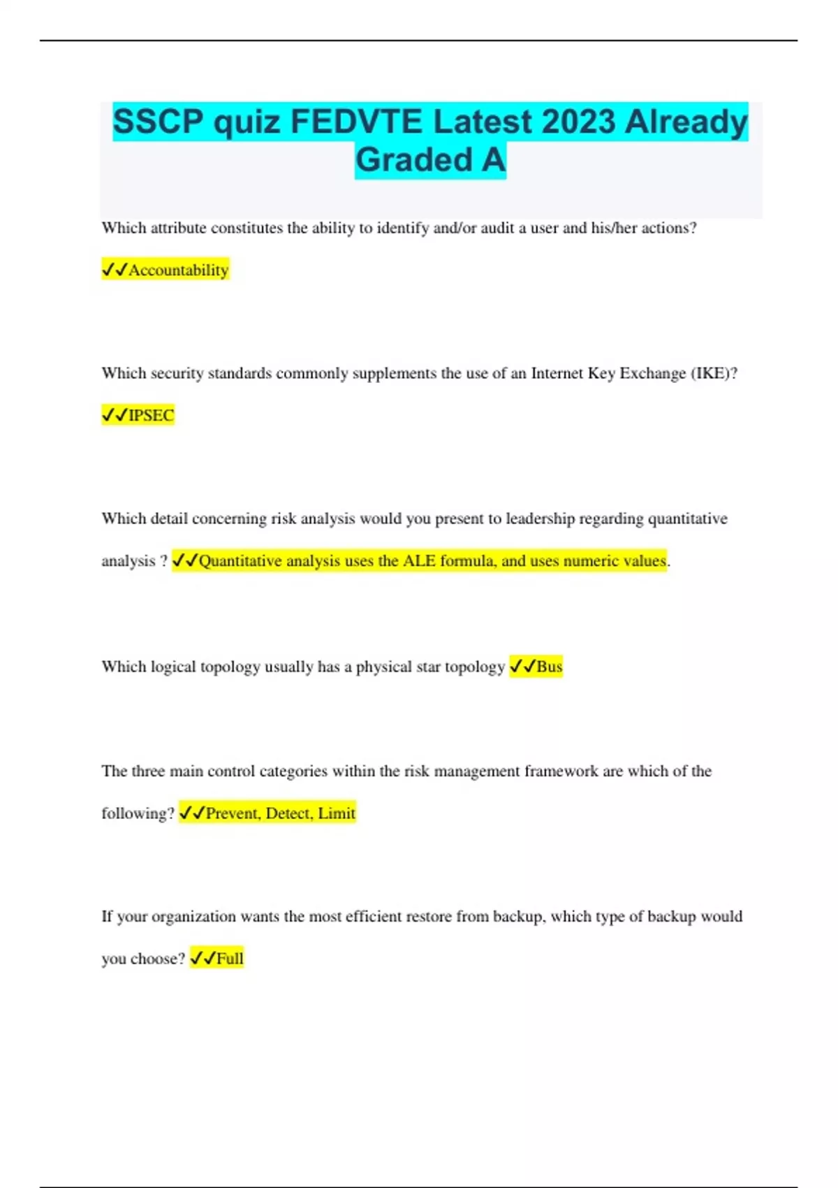 sscp quiz fedvte latest 2023 already graded a