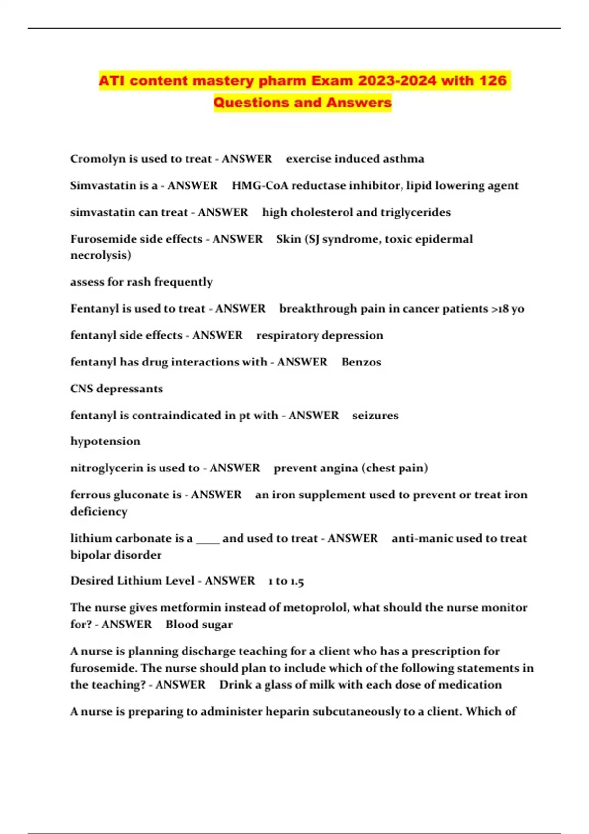 ATI content mastery pharm Exam with 126 Questions and Answers...