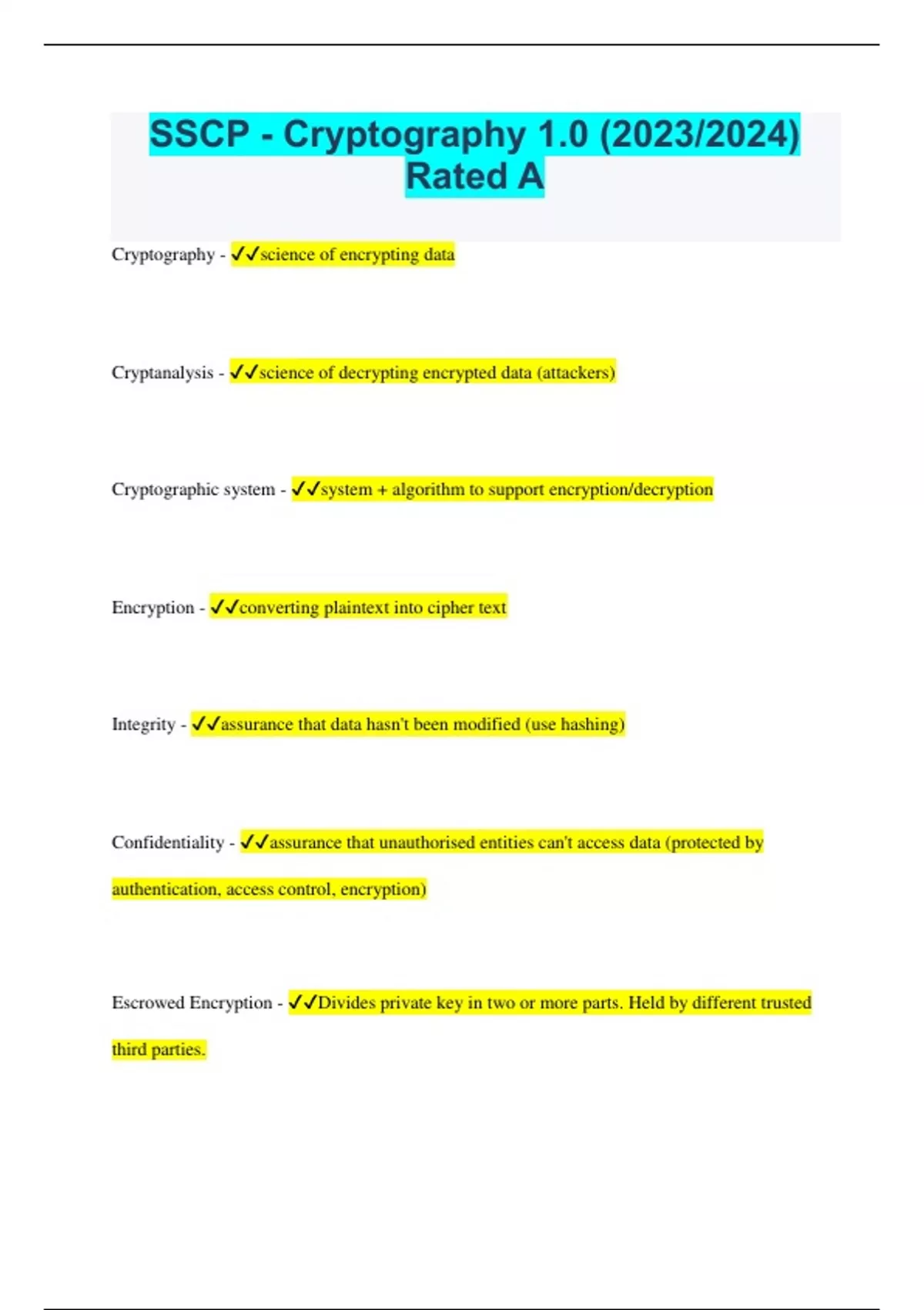 SSCP - Cryptography 1.0 (2023/2024) Rated A