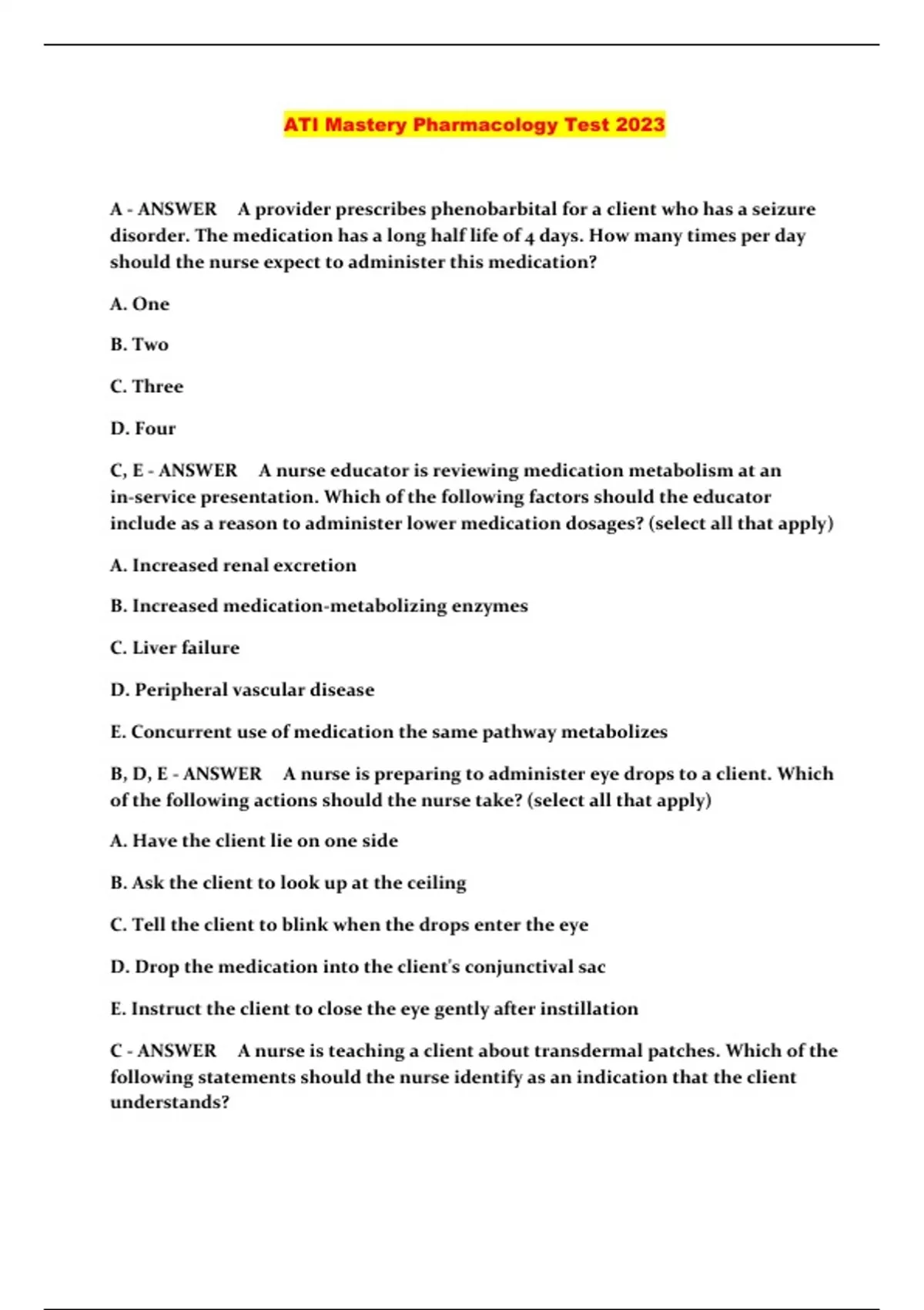 ATI Mastery Pharmacology Test 2023...